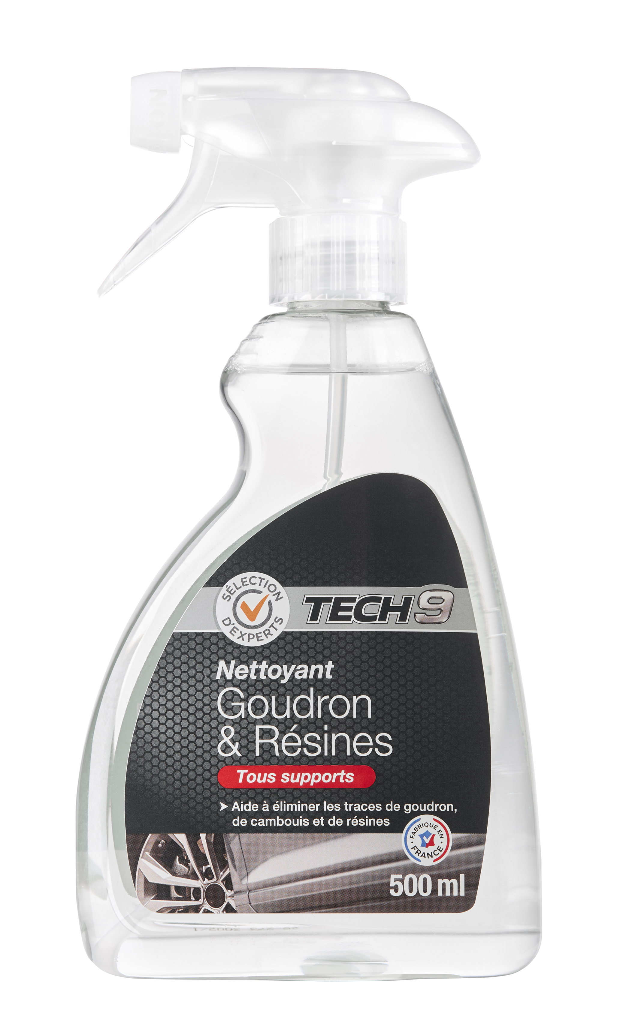 Nettoyant goudron et résine tech 9 Tous supports Aide à éliminer les traces de goudron, résine ou cambouis Fait en France