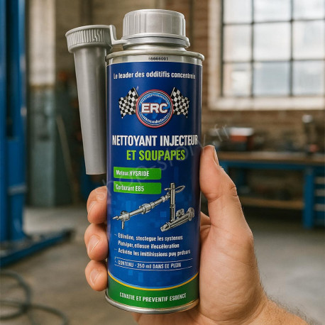 Le Nettoyant Injecteurs et Soupapes ERC 250 ml est un choix intelligent pour tout conducteur soucieux des performances et de la propreté de son moteur hybride ou E85. Il combine efficacité, simplicité d'usage et respect de l'environnement. Offrez à votre moteur un nettoyage en profondeur et roulez plus sereinement.