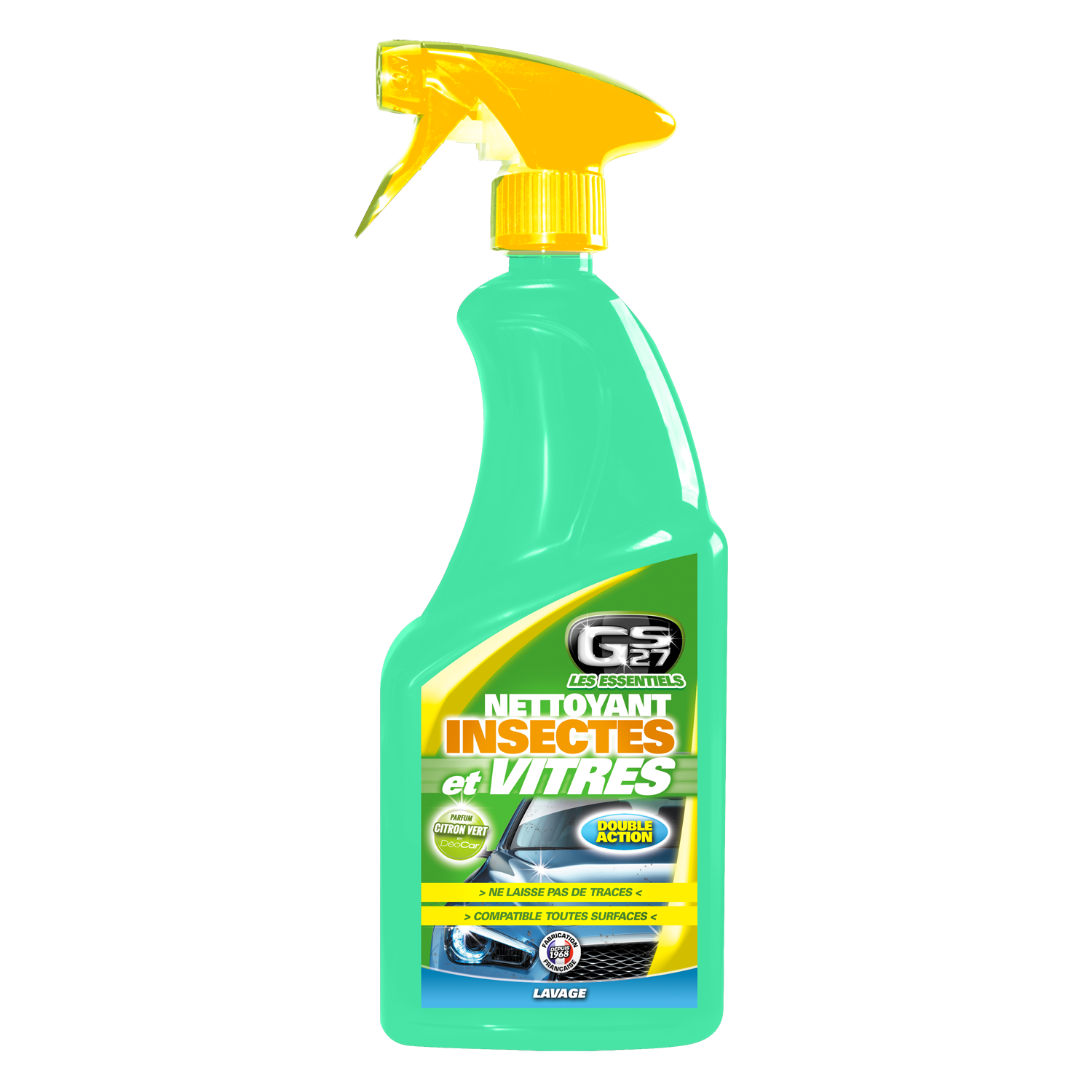 Le Nettoyant Insectes et Vitres GS27® Les Essentiels dissout le film gras sur les surfaces vitrées. Il élimine facilement toutes les traces d’insectes sur toutes les surfaces. Il ne laisse ni résidus, ni traces pour une parfaite visibilité.