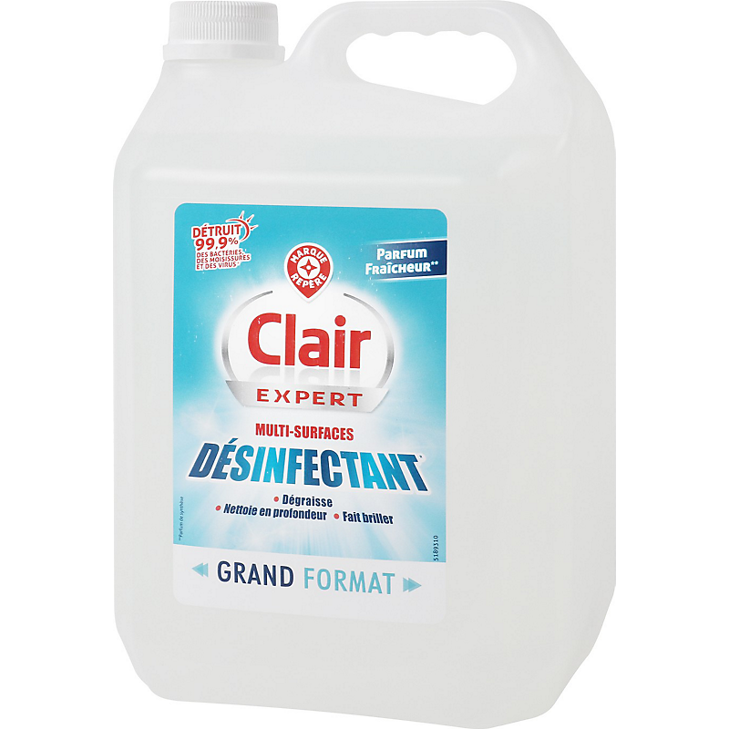 DÉSINFECTANTS ET PRODUITS ALGICIDES NON DESTINÉS À L'APPLICATION DIRECTE SUR DES ÊTRES HUMAINS OU DES ANIMAUX (TP 2). SURFACES EN CONTACT AVEC LES DENRÉES ALIMENTAIRES ET LES ALIMENTS POUR ANIMAUX (TP 4). CONTIENT ENTRE AUTRES INGRÉDIENTS : MOINS DE 5 % : AGENTS DE SURFACE CATIONIQUES, AGENTS DE SURFACE NON IONIQUES. ÉGALEMENT : PARFUMS (EUCALYPTUS GLOBULUS OIL), DÉSINFECTANTS (BENZALKONIUM CHLORIDE (N°CAS : 68424-85-1) À 1,5% (M/M)).