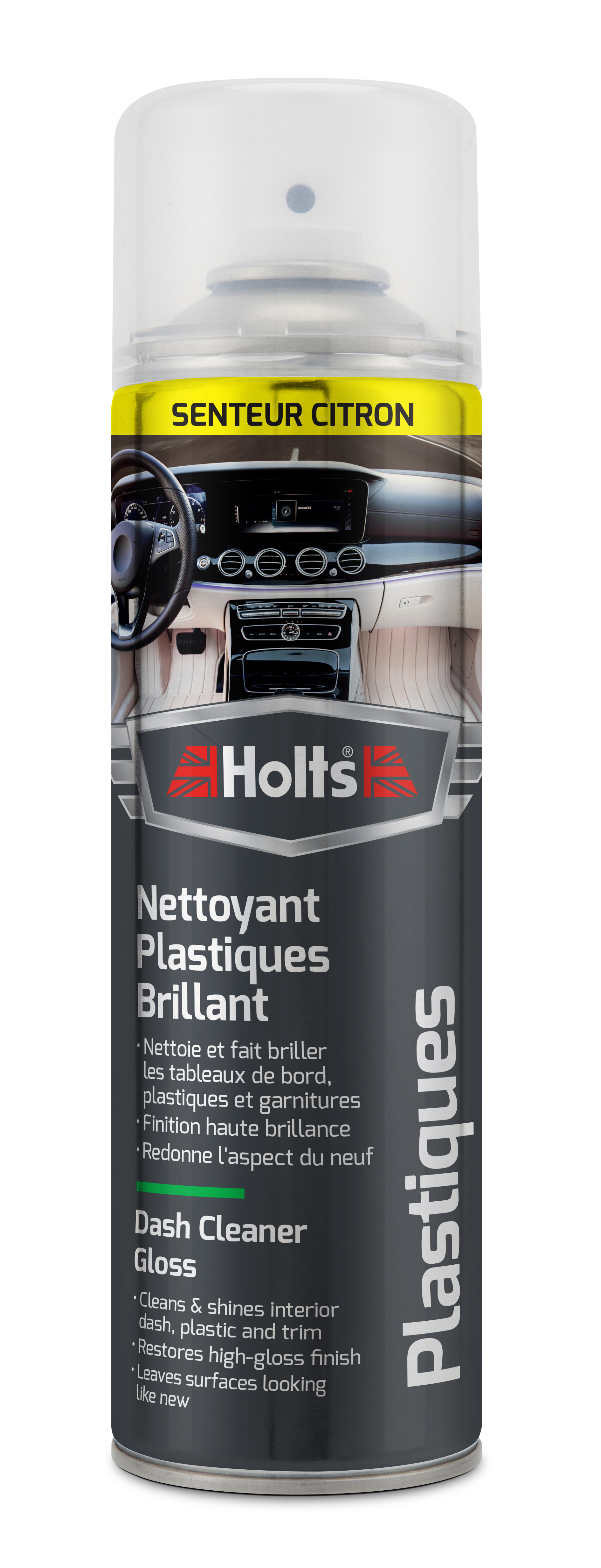 HOLTS Nettoyant Plastiques brillant citron 500 ml: Avantages: Senteur Citron. Belle finition brillante. Mode d'emploi: Bien agiter l'aérosol et pulvériser sur la surface à traiter. Nettoyer la surface avec une microfibre THEO pour enlever la saleté et créer un bel aspect brillant. Pour les zones difficiles d'accès ou pour éviter toutes éclaboussures sur les tissus, utiliser directement sur un chiffon THEO. Conseils d'utilisation: Utiliser uniquement sur les surfaces dures, ne pas utiliser sur les vitres, le volant, le levier de vitesse ou les pédales.