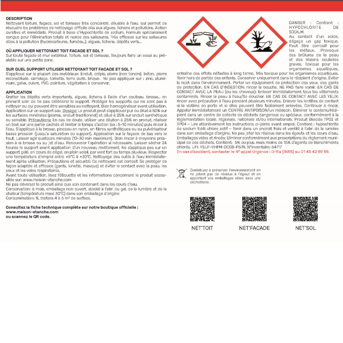 A noter que NET'TOIT, NET'SOL, NET'FACADE sont les mêmes produits.