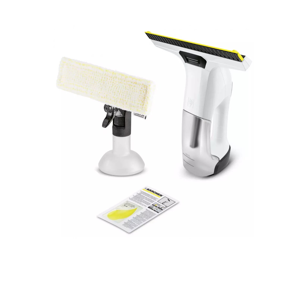 Accessoire(s) inclus : Pulvérisateur avec bonnette microfibres, Nettoyant vitres concentré 20 ml, Chargeur rapide (compatible uniquement avec le WV6).