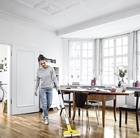 Son articulation pivotante facilite aussi le nettoyage des coins et des bords. Le temps de séchage du sol n'est que d'environ 2 minutes, ce qui sécurise l'utilisation sur tous les sols durs, comme le parquet. La puissante batterie lithium-ion garantit une liberté de mouvement maximale car elle permet un lavage indépendant des prises électriques.