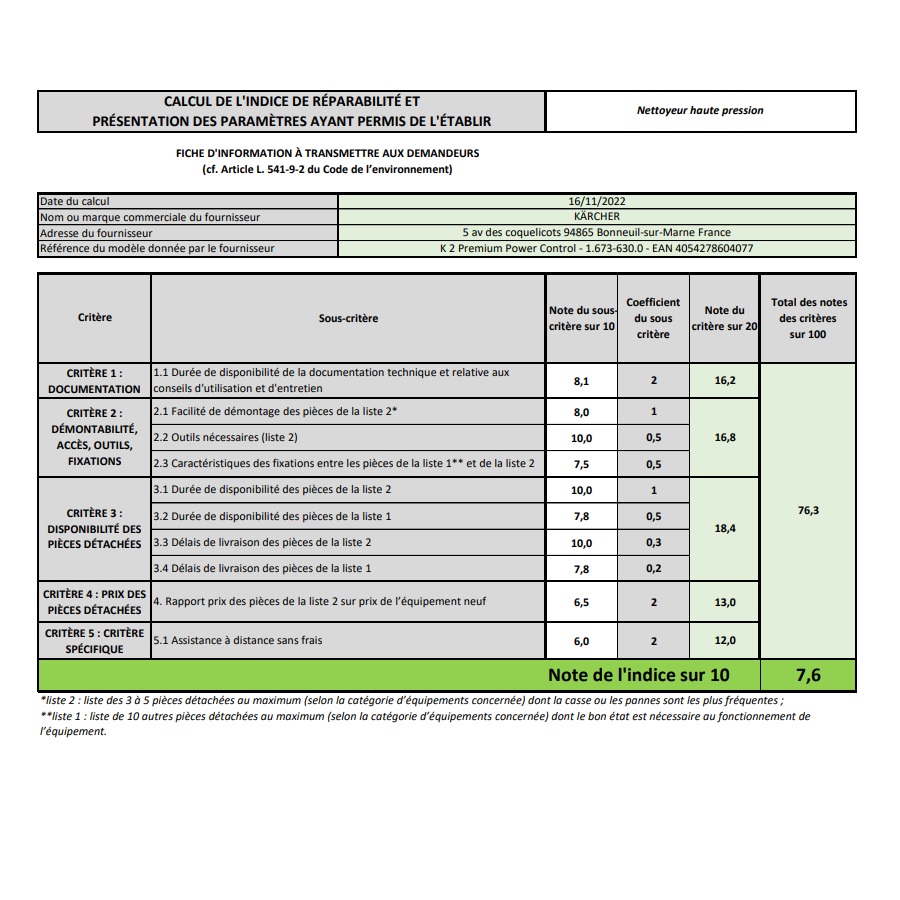 | Libellé | Nettoyeur haute pression 110bars k2 premium power control - 16736300 - karcher |