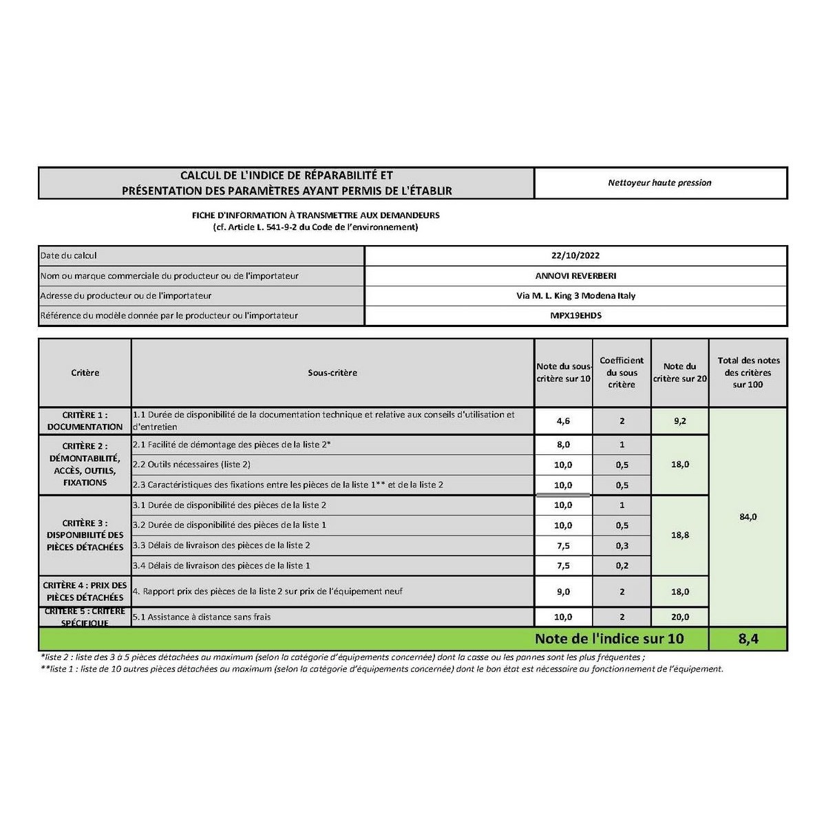 Indice de réparabilité 8,4 / 10