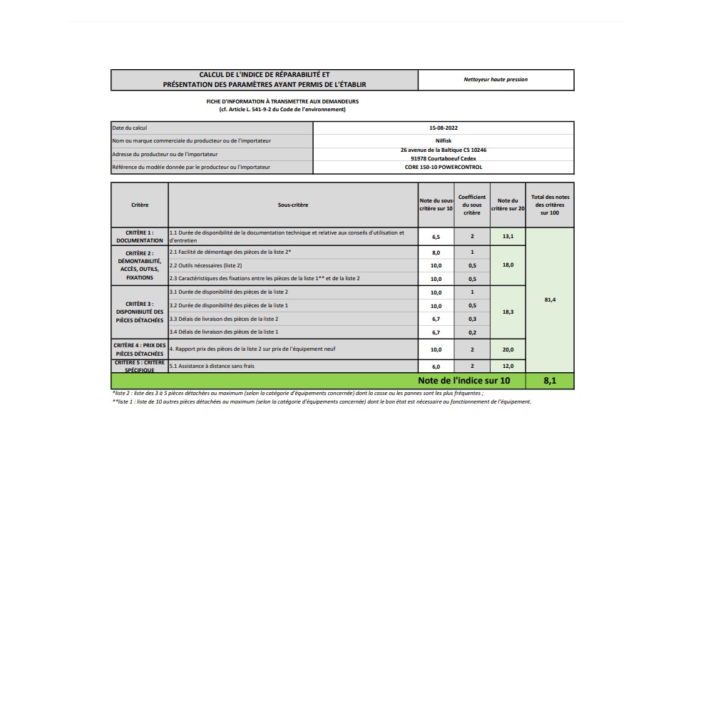 | Libellé | Nettoyeur haute pression 150 bars - 128471334 - nilfisk |