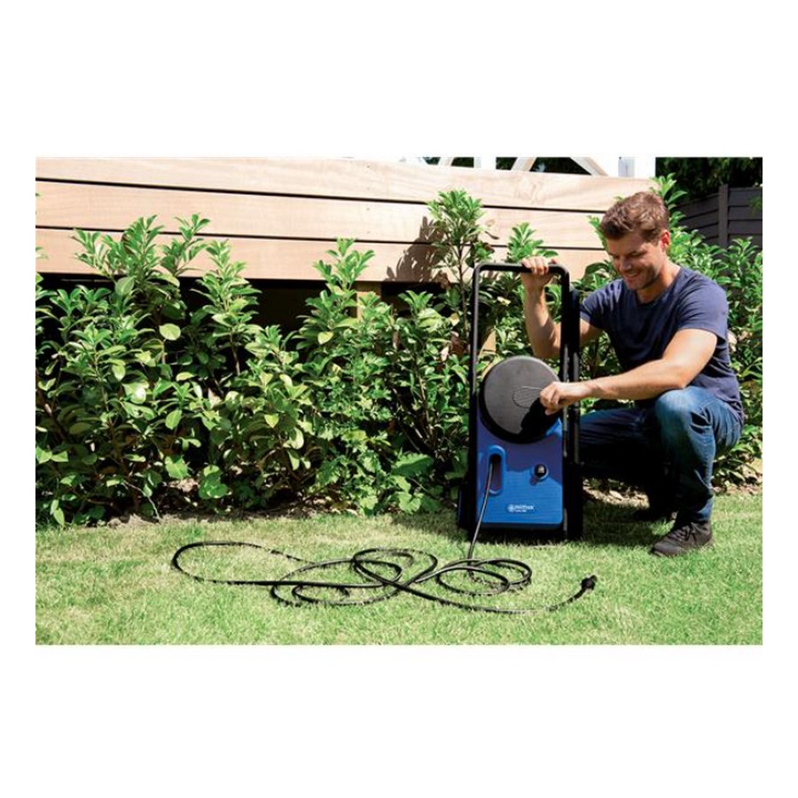 128471334 - Nettoyeur haute pression 150 bars - Nettoyeur haute pression Nilfisk 128471334 pour un nettoyage en toute simplicité. Idéal pour nettoyer rapidement les grandes surfaces et parfait pour nettoyer fréquemment les terrasses, mobilier de jardin, gouttières, portail mais aussi voitures, vélos... Pompe en aluminium pour plus de robustesse. Pistolet haute pression fourni avec une buse Tornado à jet plat pour décaper toutes les surfaces, une buse Powerspeed à jet rotatif, 2 à 3 fois plus efficace qu’une buse classique, un pulvérisateur à mousse (capacité 0,5 litres) permettant de pulvériser un détergent, un débouche buse. Tous ces accessoires se connectent facilement, en quelques secondes et sans outils, grâce au système Click & Clean. De plus, le Quick Coupling (raccord rapide et tournant) évite le vrillage du flexible et facilite son rangement.