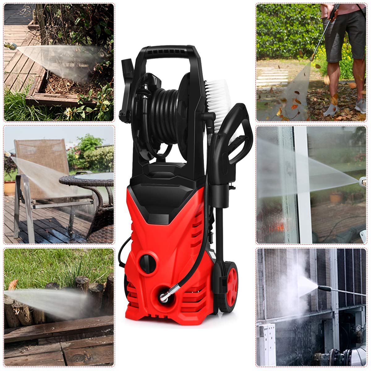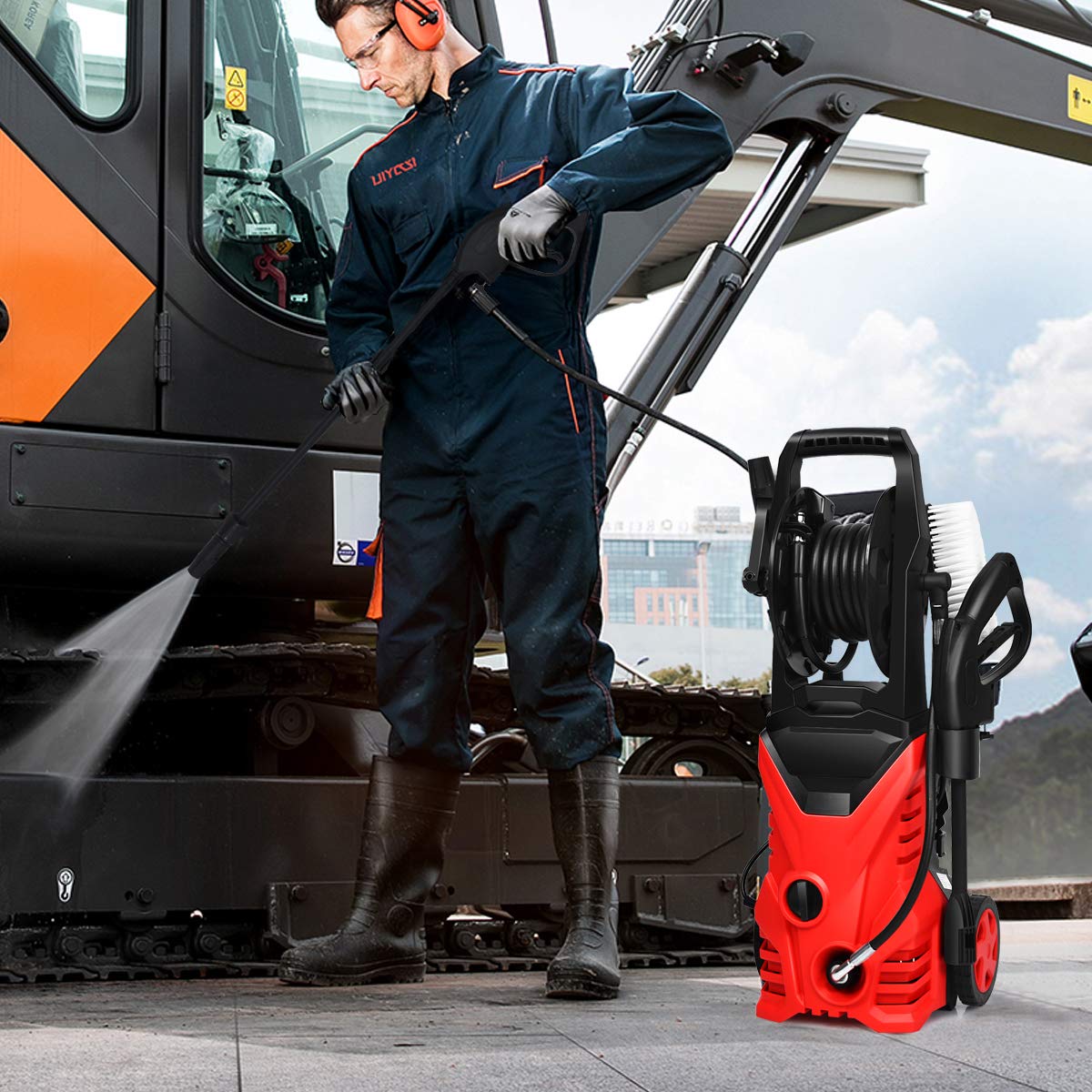 [ Large éventail d’applications ] Le nettoyeur haute pression multifonctionnel peut facilement laver votre voiture en mouillant, rinçant, pulvérisant de la mousse et brossant. Pendant ce temps, il peut également être largement utilisé pour nettoyer les murs extérieurs de votre maison, votre terrasse, un jardin, un bateau, etc. Ce sera un excellent investissement pour votre quotidien.