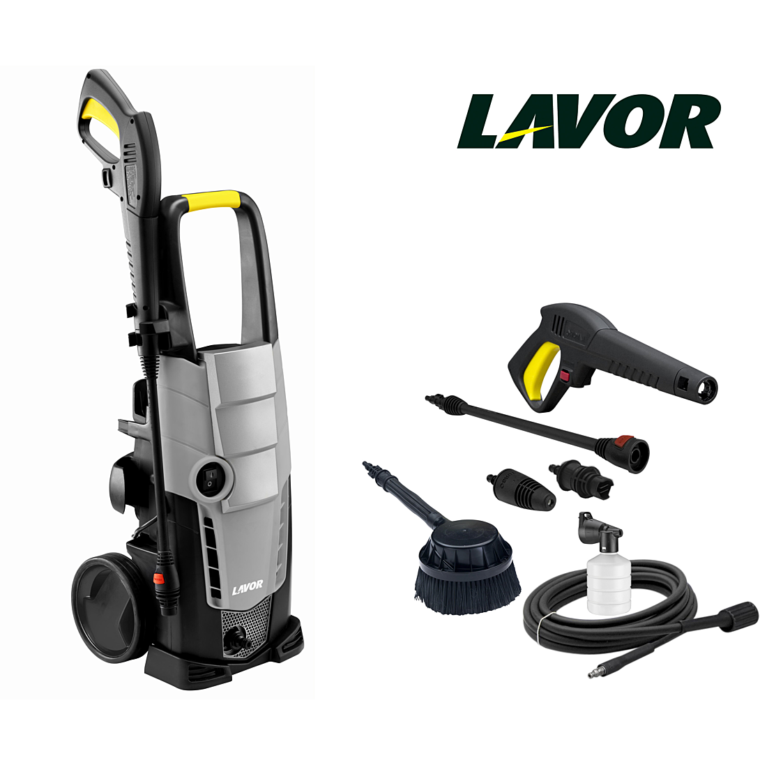 Nettoyeur haute pression 150 bar max , débit 450 l/h max, 2100 W, de la nouvelle gamme grise GL. Unité de pompe axiale, tête en aluminium à trois pistons en acier à haute résistance avec soupape de dérivation intégrée. Equipé des accessoires suivants : d'un flexible haute pression de 6 m, d'un pistolet avec raccord rapide, d'une lance pour buse interchangeable, de 2 buses (1 jet variable, 1 TURBO), 1 brosse rotative et d'un diffuseur de détergent avec bidon. Chariot avec poignée ergonomique, deux grandes roues et porte accessoires. Système d'arrêt automatique. Idéal pour tout type de nettoyage extérieur grâce à de nombreux accessoires, y compris le lavage de la voiture, la moto, le vélo, les allées et les planchers extérieurs en général, les murettes, les meubles et outils de jardin.
