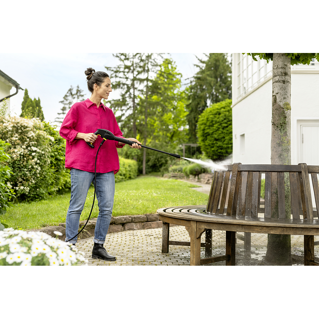 Le K 2 Classic va à l'essentiel, petit, portable et facile à ranger. Il est adapté à de petites tâches de nettoyage comme le mobilier de jardin, une vélo ou des outils. PLUS PRODUIT : • Petit et léger • Poignée de transport souple • Pompe Ncor® robuste • Rangement des lances et de la poignée pistolet sur l’appareil • Moteur universel PRINCIPALES CARACTÉRISTIQUES : pression max 20-110 bar, débit d'eau max 360 l/h, puissance 1400 Watts, moteur universel; pompes N-Cor, surface conseillé 20m²/h. ÉQUIPEMENT : Lance jet plat et rotabuse, flexible haute pression de 3 m, rangement pour lances, câble d’alimentation 5 m, poignée pistolet, raccord facile au flexible et à la poignée pistolet, poignée de transport télescopique,nez de robinet.