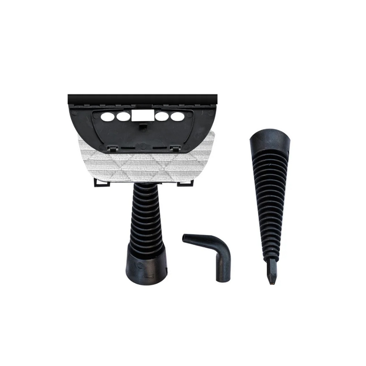 Comprend 5 accessoires : un accessoire spécial en verre, un accessoire en tissu, une buse coudée, une brosse ronde et un chiffon.