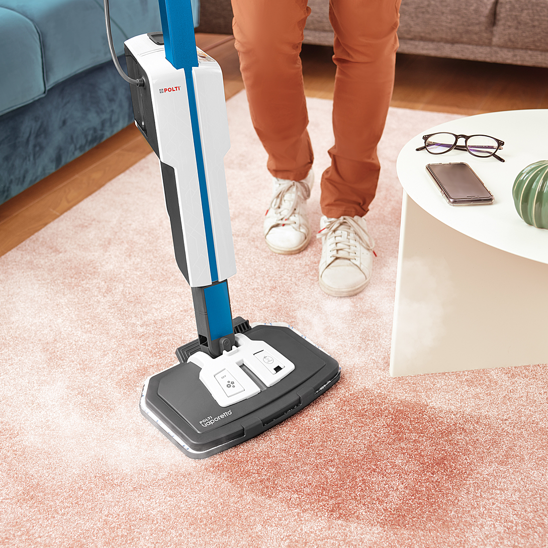 Polti Vaporetto SV620_Style deux fonctions en un seul appareil : balai vapeur pour nettoyer tous les sols et nettoyeur vapeur portable pour désinfecter toutes les surfaces lavables de la maison grâce à la large gamme d'accessoires. Avec le distributeur Frescovapor, il laisse un parfum frais dans la pièce. Fonction 2 en 1 : balai vapeur avec nettoyeur vapeur portable intégré Tue et élimine 99,9%* des virus, germes et bactéries Fonction Extra Vapeur 15 accessoires pour nettoyer toutes les surfaces