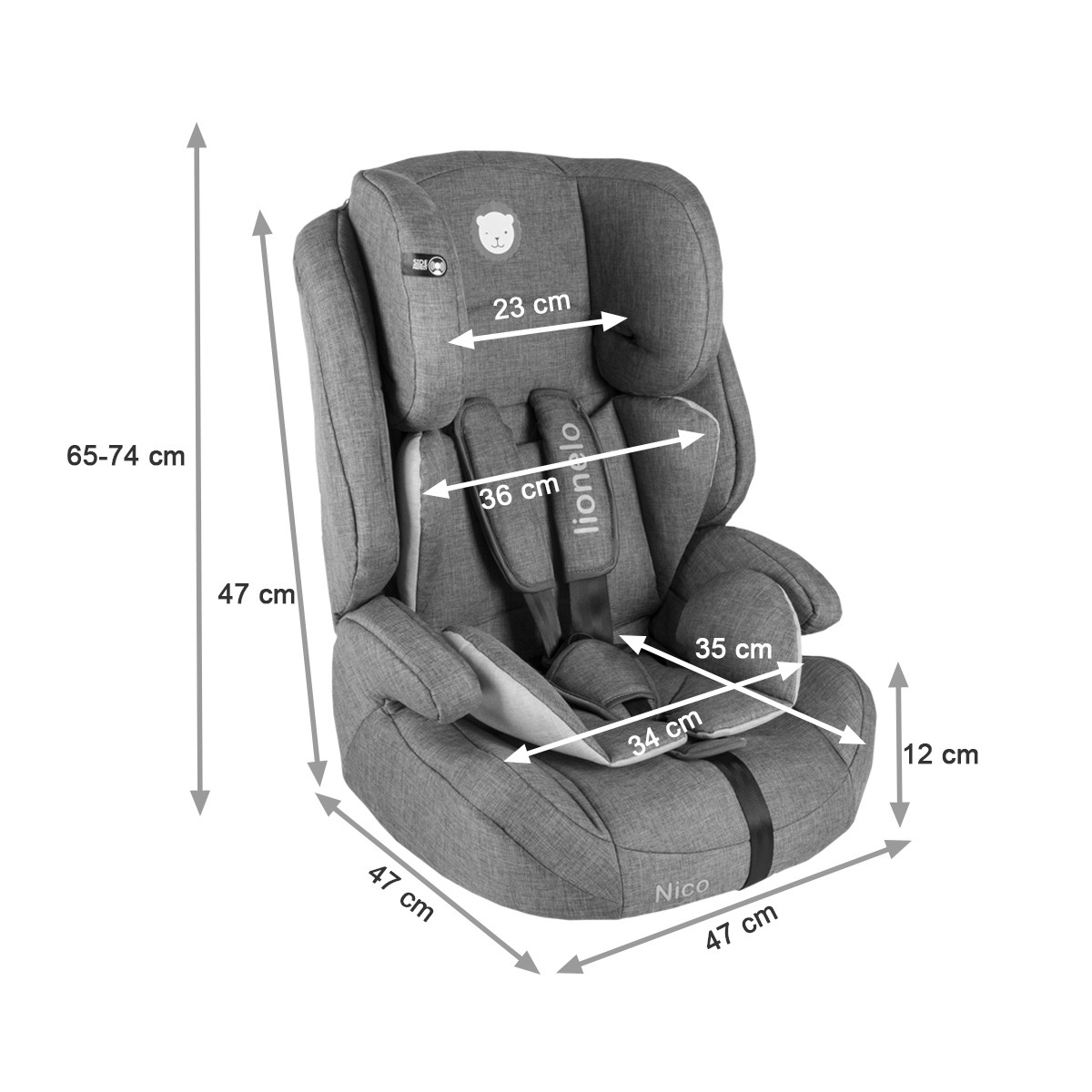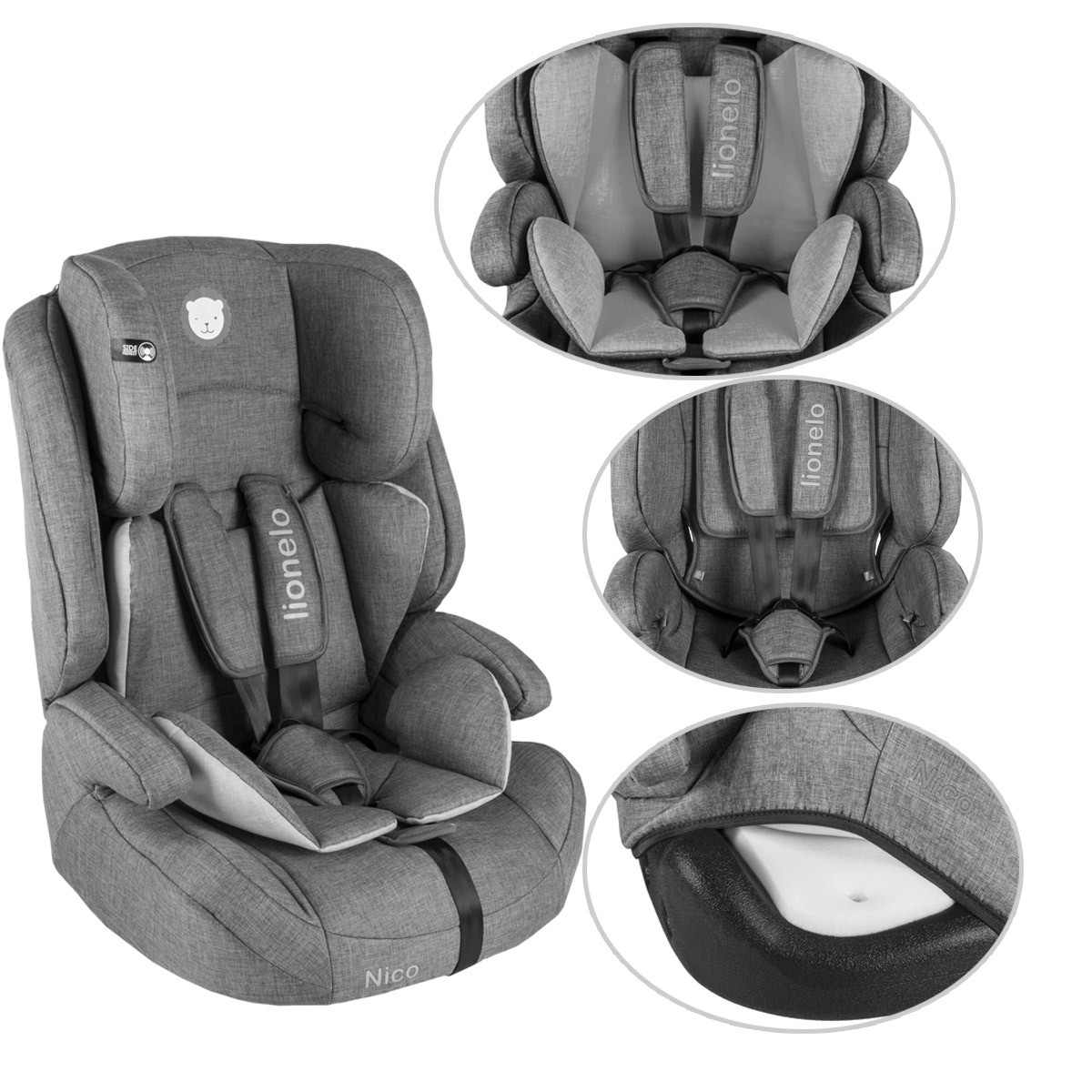 Siège-auto évolutif NICO, Groupe 1/2/3 de la marque LIONELO avec système de fixation Top Tether.