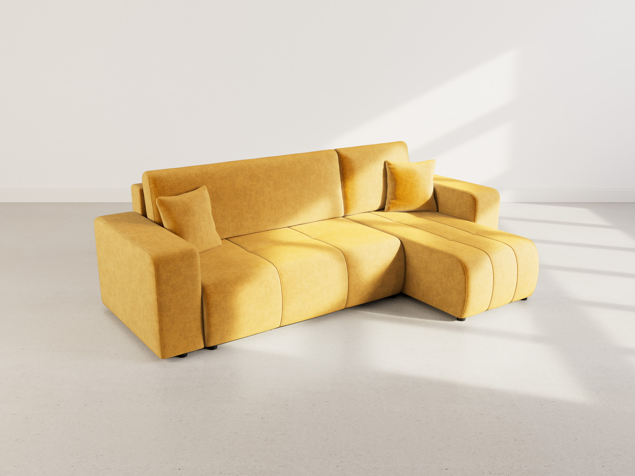Le canapé d'angle réversible Nicole est le choix idéal pour ceux qui recherchent un meuble élégant, fonctionnel et adaptable à leur espace. Conçu pour offrir un confort optimal, il se transforme facilement en un couchage d'appoint de 200x125cm, parfait pour accueillir vos invités en toute sérénité. De plus, son coffre de rangement intégré de 128x61x22cm permet d'optimiser l’espace, offrant un lieu discret pour stocker vos couvertures, oreillers ou autres accessoires du quotidien. Ce canapé a été pensé pour s'adapter à votre intérieur : vous pouvez en effet choisir l'angle qui convient le mieux à l'agencement de votre salon, vous garantissant ainsi une harmonie parfaite avec votre décoration.