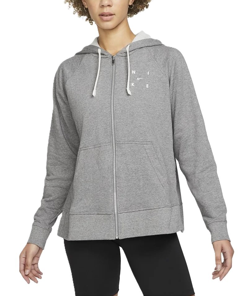 Sweat zippé Nike Dri-FIT Get Fit gris clair pour femme : confort technique et style épuré à prix dégriffé.