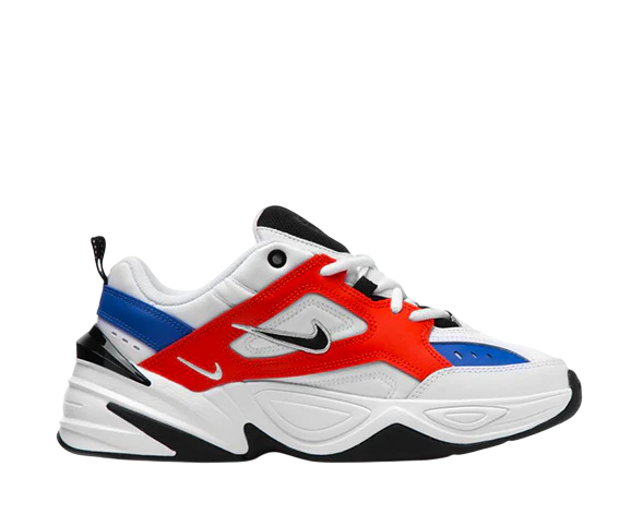 Avec sa silhouette massive et ses lignes superposées, la M2K Tekno joue la carte du “chunky style” tout en restant confortable et équilibrée. La combinaison de blanc, noir et touches d’orange crée un contraste visuel fort, idéal pour dynamiser une tenue sobre. La semelle épaisse assure un excellent amorti et une démarche stable, tandis que la tige en cuir et textile garantit durabilité et maintien.