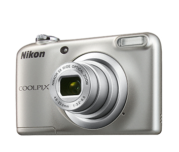 Nikon COOLPIX A10. Type d'appareil photo: Appareil-photo compact, Mégapixel: 16,1 MP, Taille du capteur d'image: 1/2.3", Type de capteur: CCD (dispositif à transfert de charge), Résolution d'image maximale: 4608 x 3456 pixels. La sensibilité ISO (max): 1600. Zoom optique: 5x, Zoom numérique: 4x, Longueur focale: 4.6 - 23 mm. Vitesse maximale d'obturation de la caméra: 1/2000 s. Taille de l'écran: 6,86 cm (2.7"). Mémoire interne: 17 Mo. PictBridge. Poids: 160 g. Couleur du produit: Argent