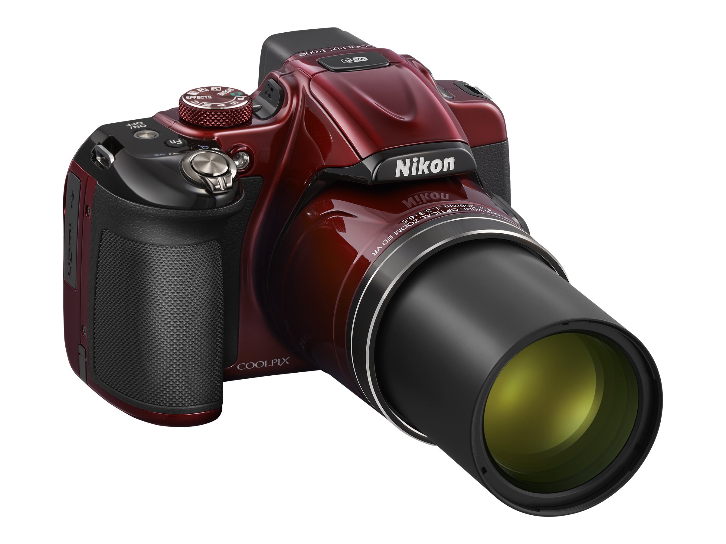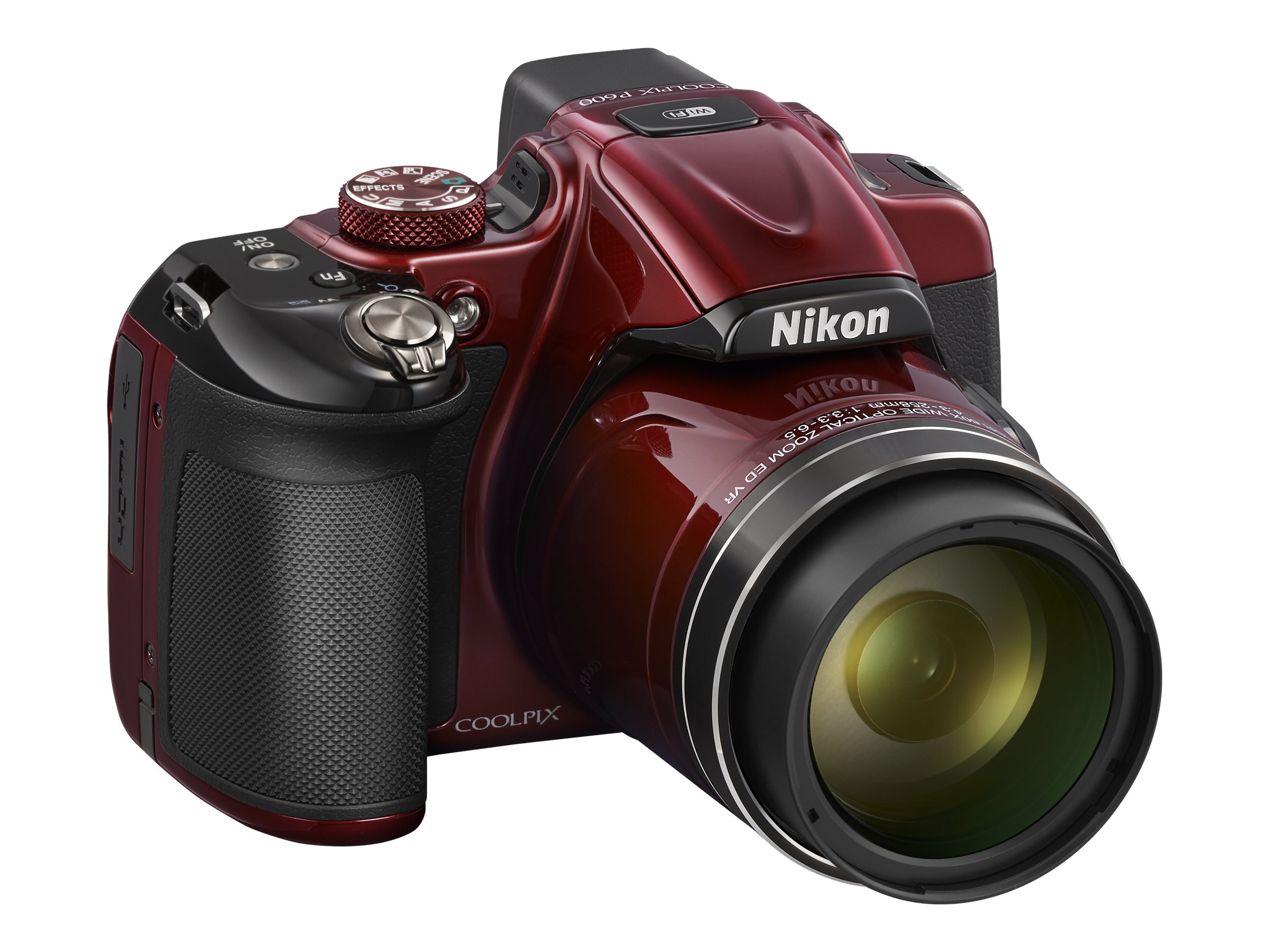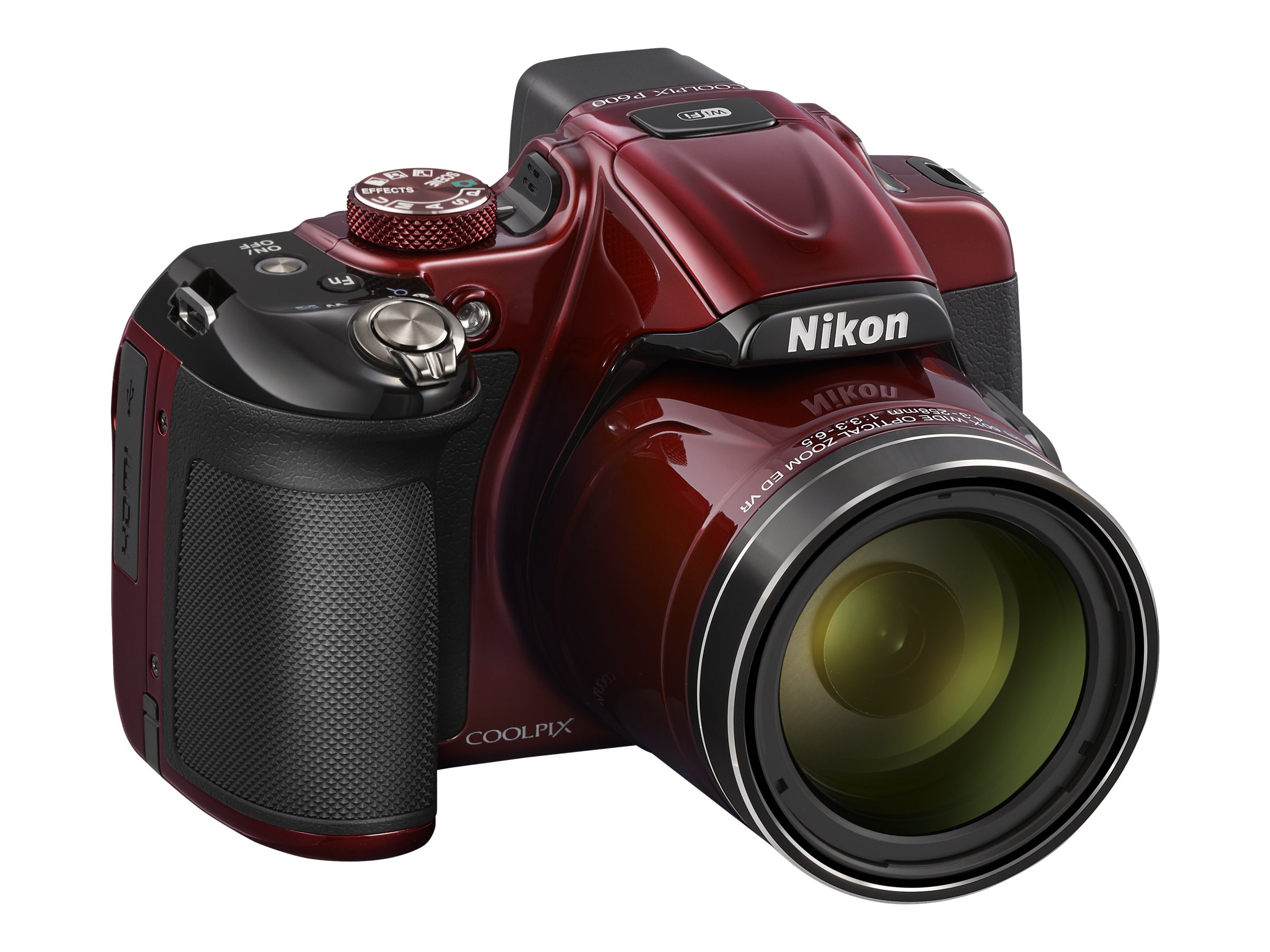 Nikon COOLPIX P600. Type d'appareil photo: Appareil photo Bridge, Mégapixel: 16,1 MP, Taille du capteur d'image: 1/2.3", Type de capteur: CMOS, Résolution d'image maximale: 4608 x 3456 pixels. La sensibilité ISO (max): 6400. Zoom optique: 60x, Zoom numérique: 4x, Longueur focale: 4.3 - 258 mm. Wifi. Type HD: Full HD, Résolution vidéo maximale: 1920 x 1080 pixels. Taille de l'écran: 7,62 cm (3"). Poids: 565 g. Couleur du produit: Rouge