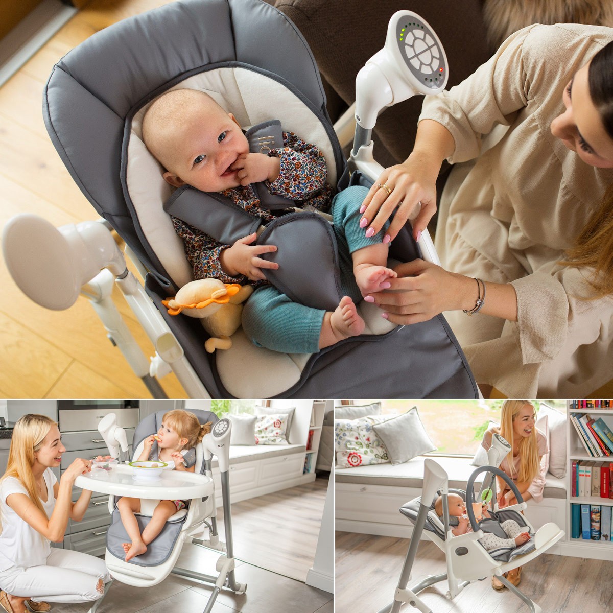 NILES 3en1 Balancelle motorisée et connectée + Chaise haute + Transat