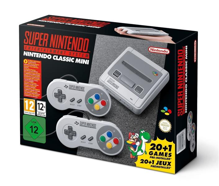Console Nintendo Classic Mini SNES+1 câble HDMI+1 câble alimentation USB+2 Manettes classiques Super Nintendo filaires+21 Jeux classiques préinstallés Liste des jeux: - Contra III : The Alien Wars - Donkey Kong Country - EarthBound - Final Fantasy II - F-ZERO - Kirby's Super Star - Kirby's Dream Course - The Legend of Zelda : A link to the Past - Mega Man X - Secret of Mana - Star Fox (Starwing) - Star Fox 2 - Super Street Fighter II Turbo : Hyper Fighting - Super Castlevania IV - Super Ghouls'n Ghosts - Super Mario Kart - Super Mario RPG : Legend of the Seven Stars - Super Mario World - Super Metroid - Super Punch-Out!! - Yoshi's Island IMPORTANT : la vente de ce produit est limitée à 1 exemplaire par commande et par foyer.