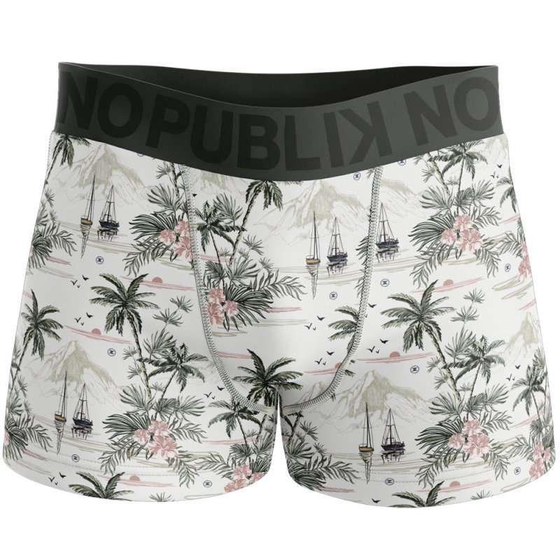 NO PUBLIK Boxer Homme Microfibre LANDSCAPE Blanc Kaki