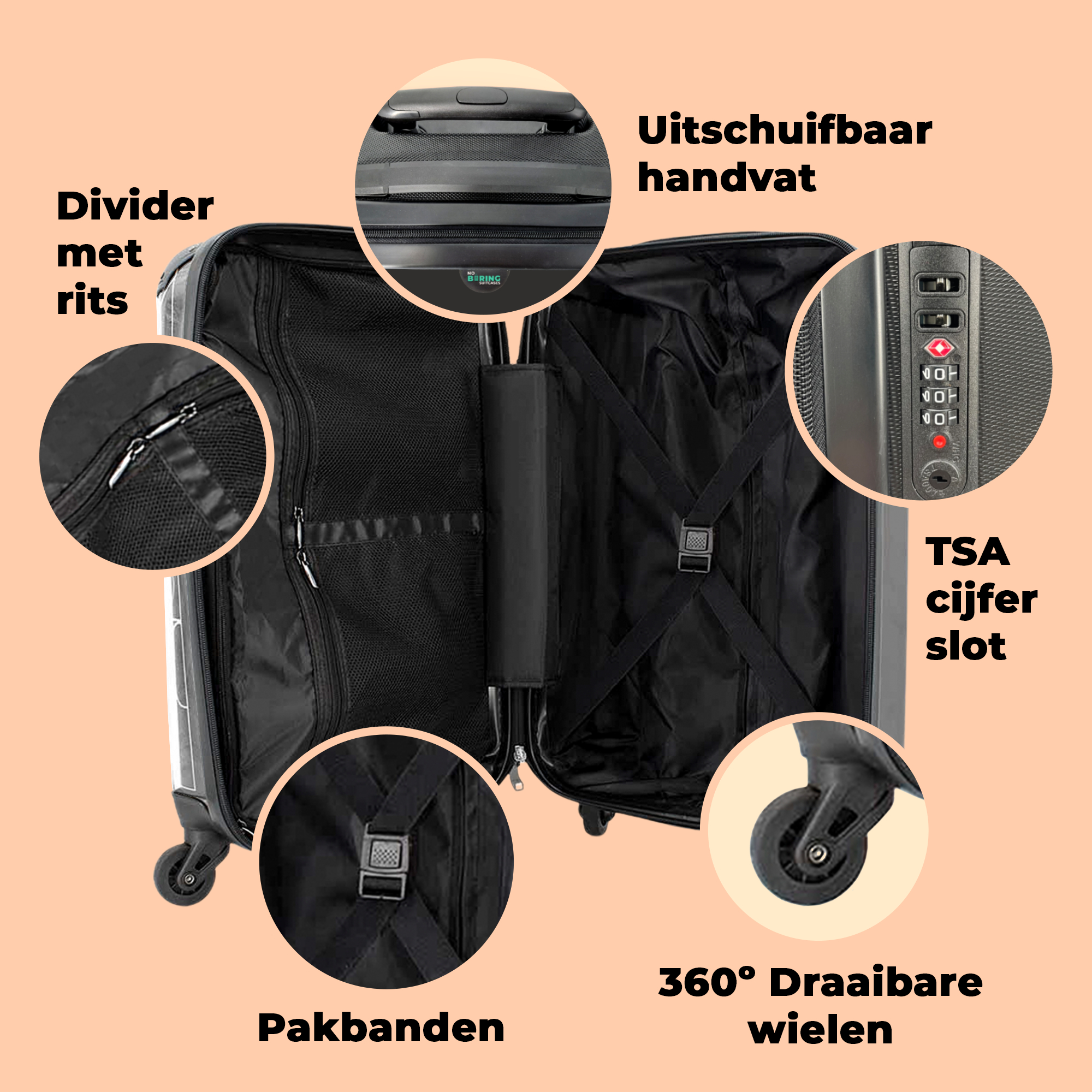 Vous recherchez une valise de qualité et tendance, idéale comme bagage à main lors de votre prochain voyage ? Alors cette valise de NoBoringSuitcases® est un must absolu ! La valise est spécialement conçue avec une façade transparente afin que l'impression de votre valise ne soit jamais endommagée. En outre, il est possible de modifier l'impression de la valise. Il présente également un niveau de finition sublime, ce qui lui confère un aspect très tendance.La valise est équipée de quatre (4) roues pivotantes, ce qui vous assure un confort optimal lors de vos déplacements. De plus, il est doté d'une poignée extensible, ce qui vous permet de l'ajuster complètement à votre convenance. De plus, il est fabriqué dans un matériau de haute qualité et le dos présente une structure nervurée, ce qui garantit sa solidité et l'absence totale de rayures.Pourquoi la valise NoBoringSuitcases® :Un niveau de finition sublime et un look à la modePoids de 2,6 kg et format de la cabine.4 roues pivotantes pour un confort de voyage optimalPoignée extractible et réglable pour s'adapter à vos besoinsUne serrure à combinaison pour une protection parfaiteIdéal comme bagage à main pour votre prochain voyageSaute à la ceinture de bagagesLes dimensions sont comprises entre 55x40x20, 55x40x23 et 55x35x25.Personnalisez-le comme vous le souhaitez100% de satisfaction du clientNous recherchons la perfection dans tout ce que nous faisons et trouvons donc très important que les clients soient satisfaits de leur nouvelle valise ! Vous n'êtes pas satisfait de votre achat ou vous avez des questions et/ou des commentaires ? Alors contactez-nous et nous chercherons ensemble une solution adaptée !