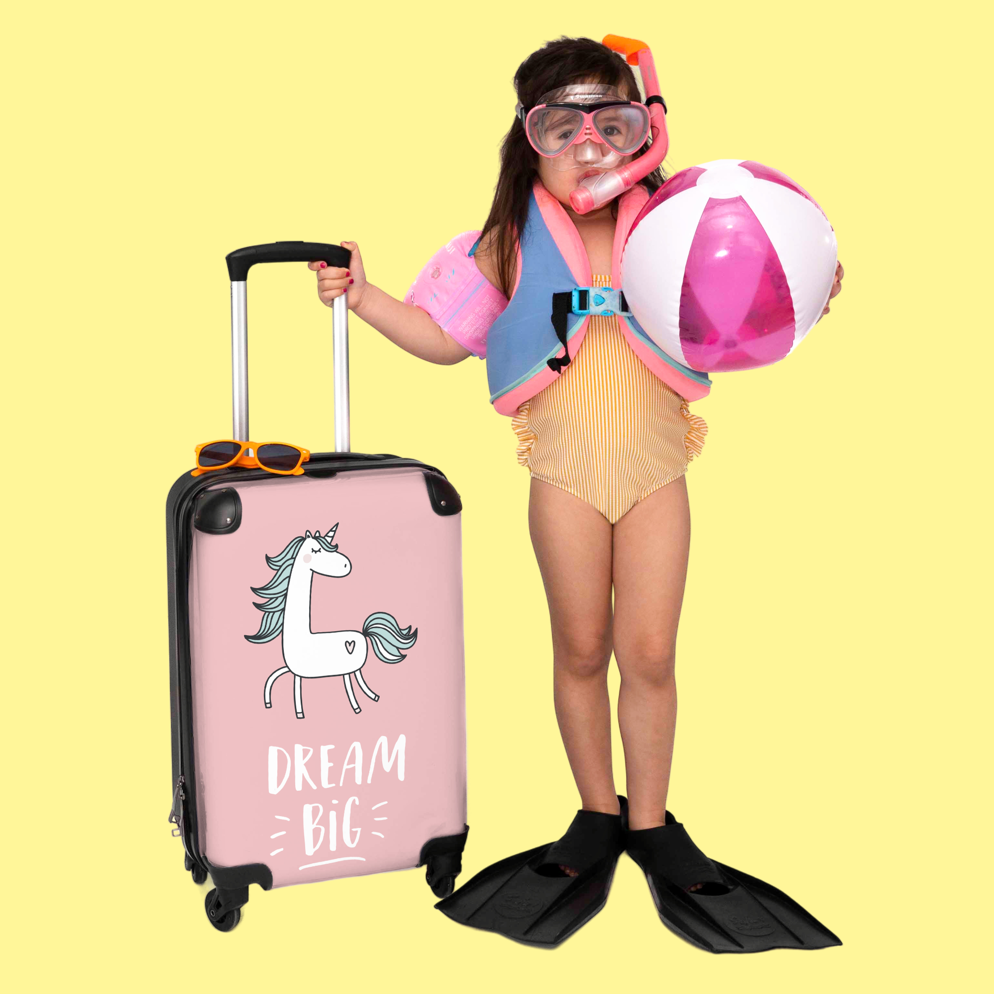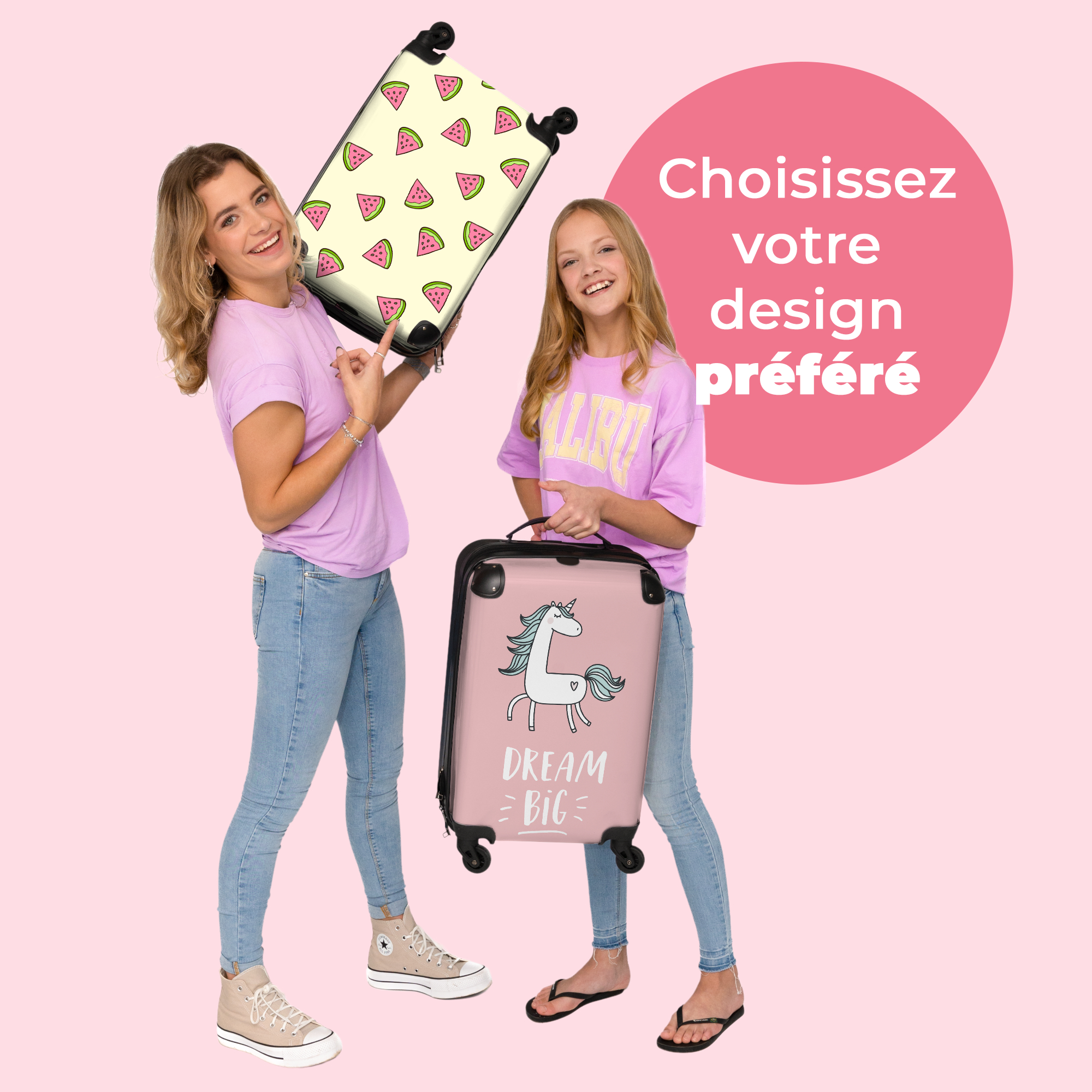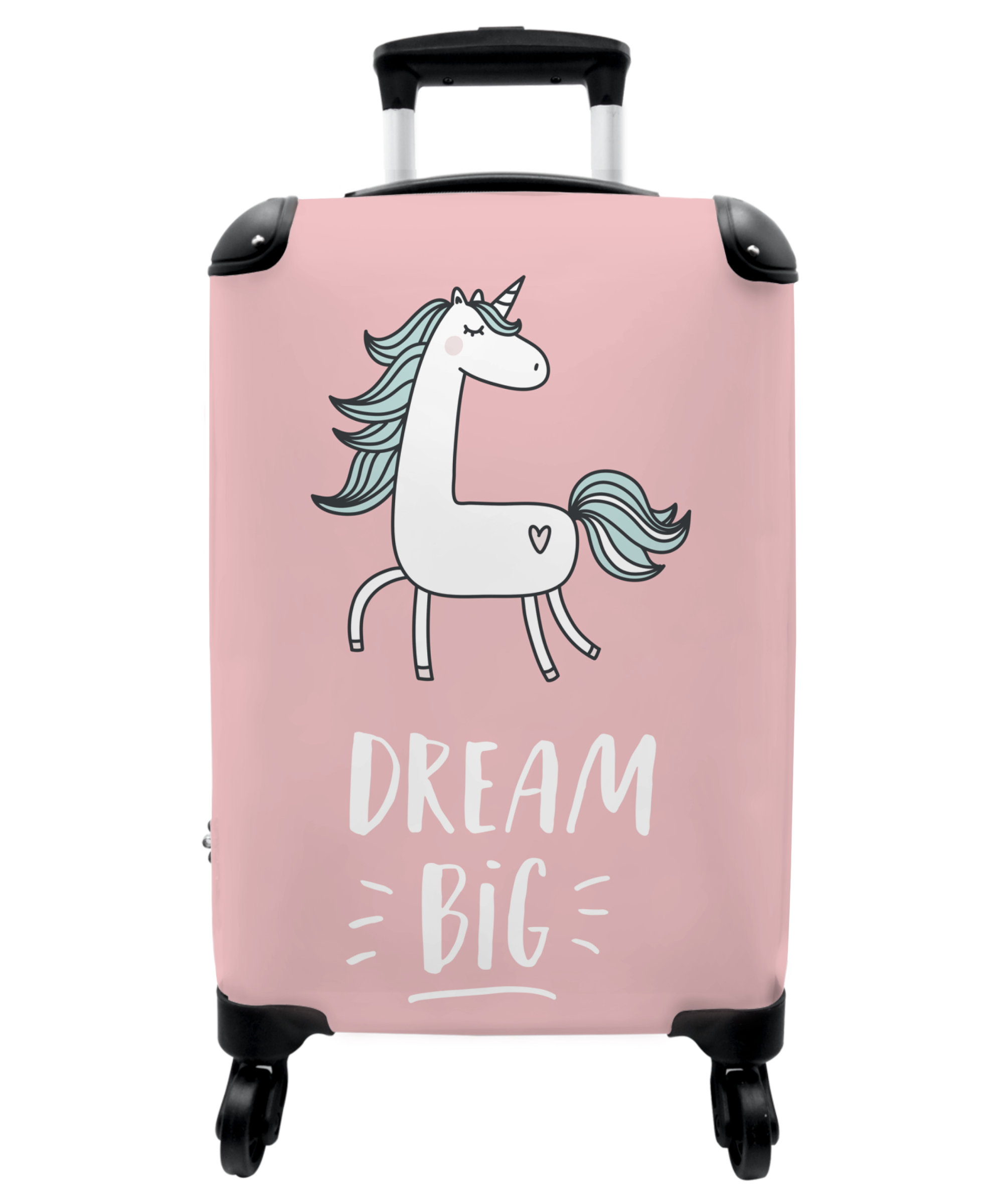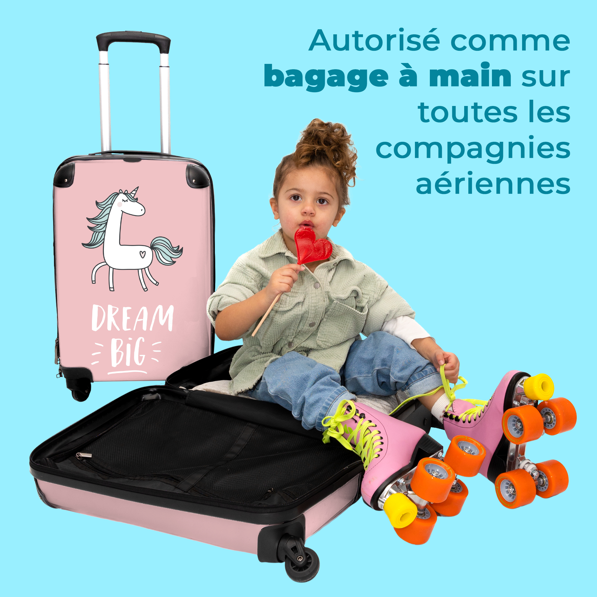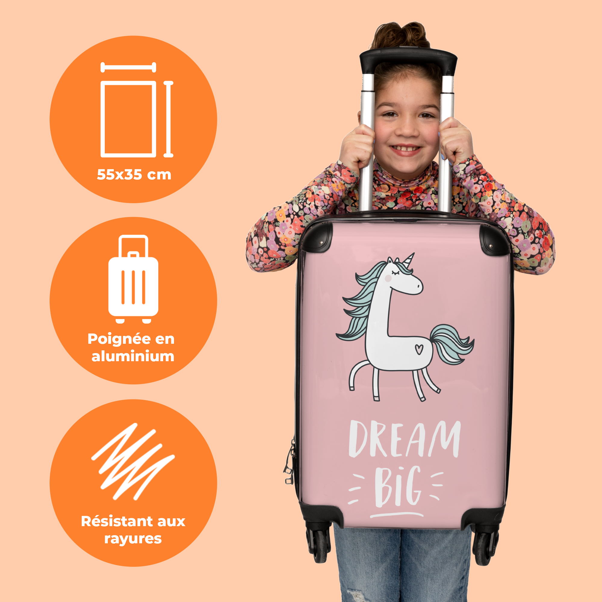 NoBoringSuitcases.com® Valise Chariot à Bagages à Main Citation - Licorne - Rose - Dream Big - Girl Bagag