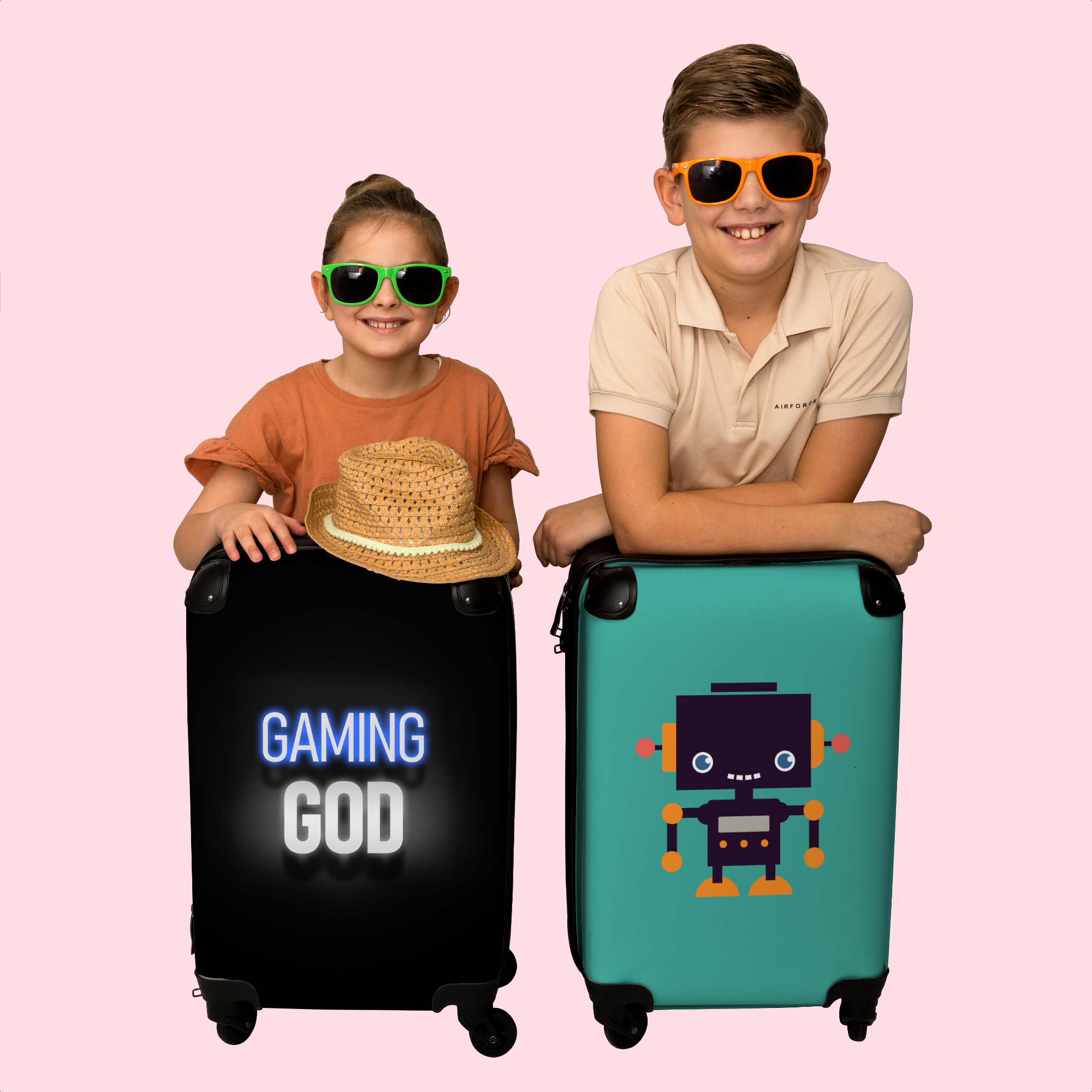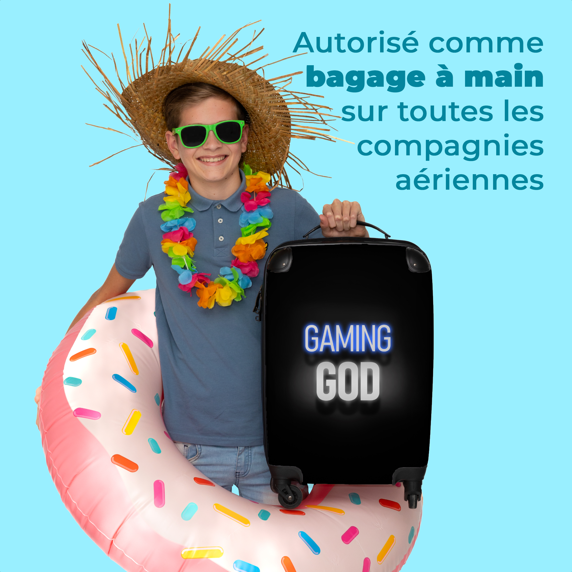 NoBoringSuitcases.com® Valise Chariot à Bagages à Main Jeux - Proverbes - Dieu des jeux - Hommes - Néon B