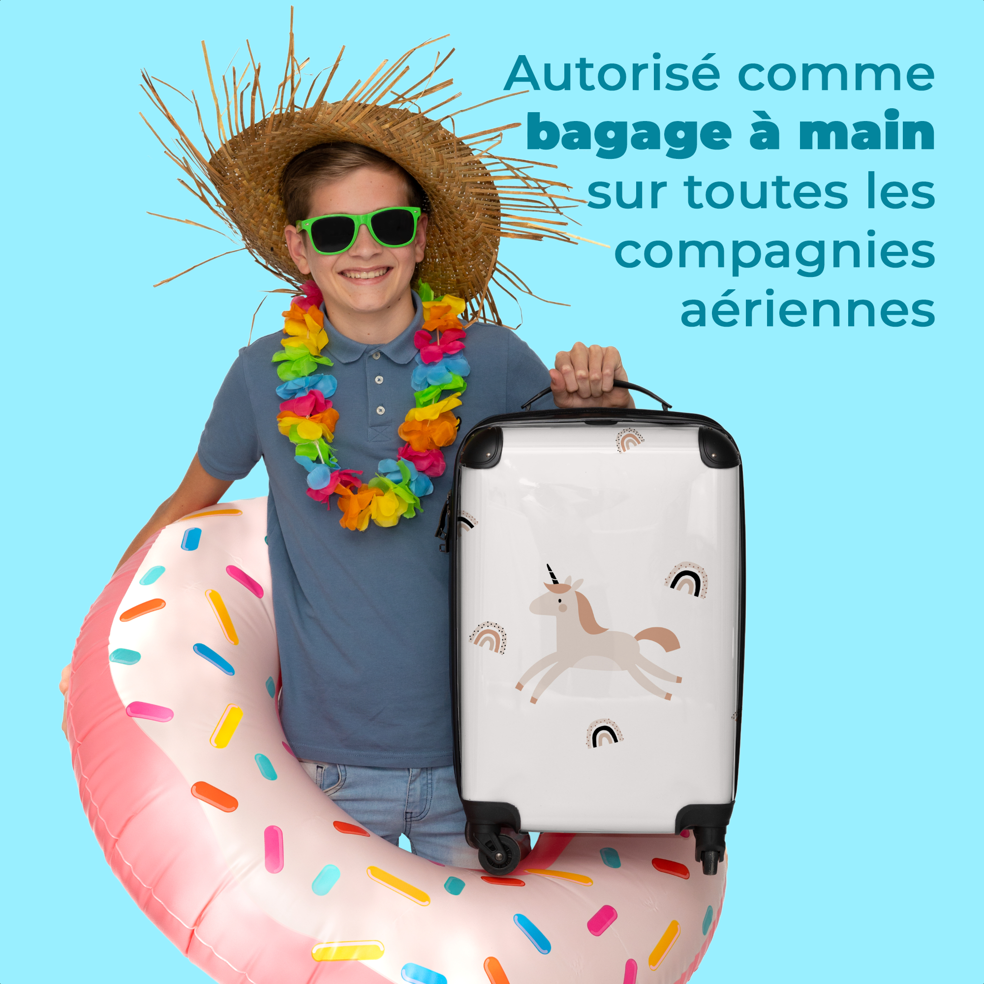 NoBoringSuitcases.com® Valise Chariot à Bagages à Main Licorne - Arc-en-ciel - Motifs - Filles - Design B