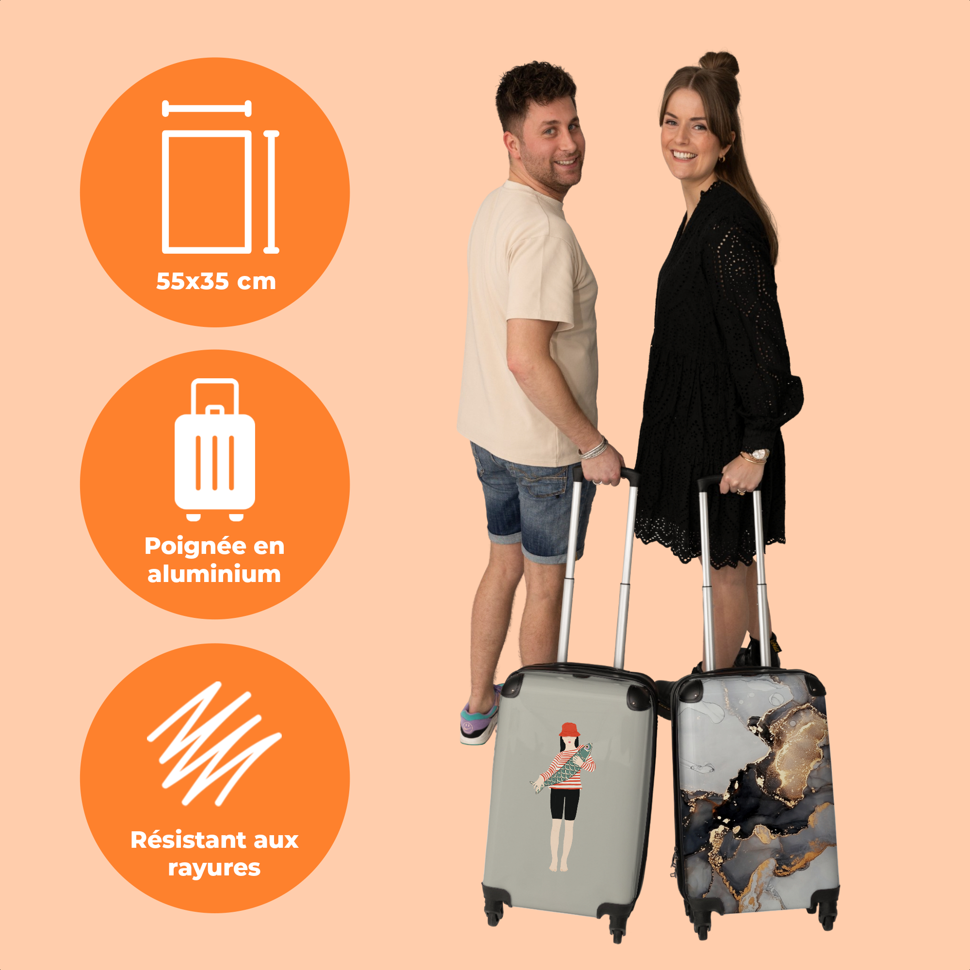 | Libellé | NoBoringSuitcases.com® Valise Chariot à Bagages à Main Poisson - Femme - Abstrait - Art Bagage Cabine imprimé 55x35x25 cm Valise de Voyage avec Roule |