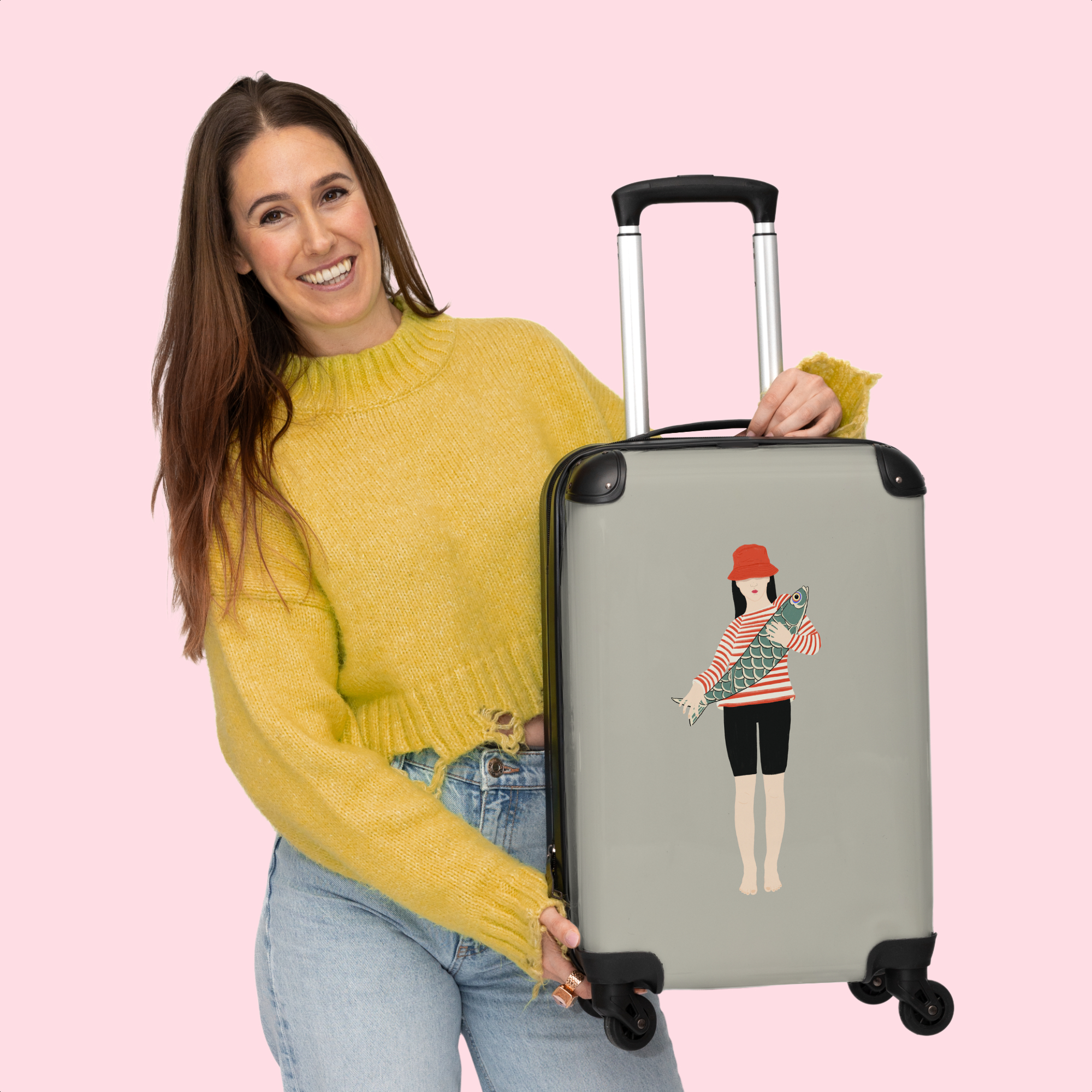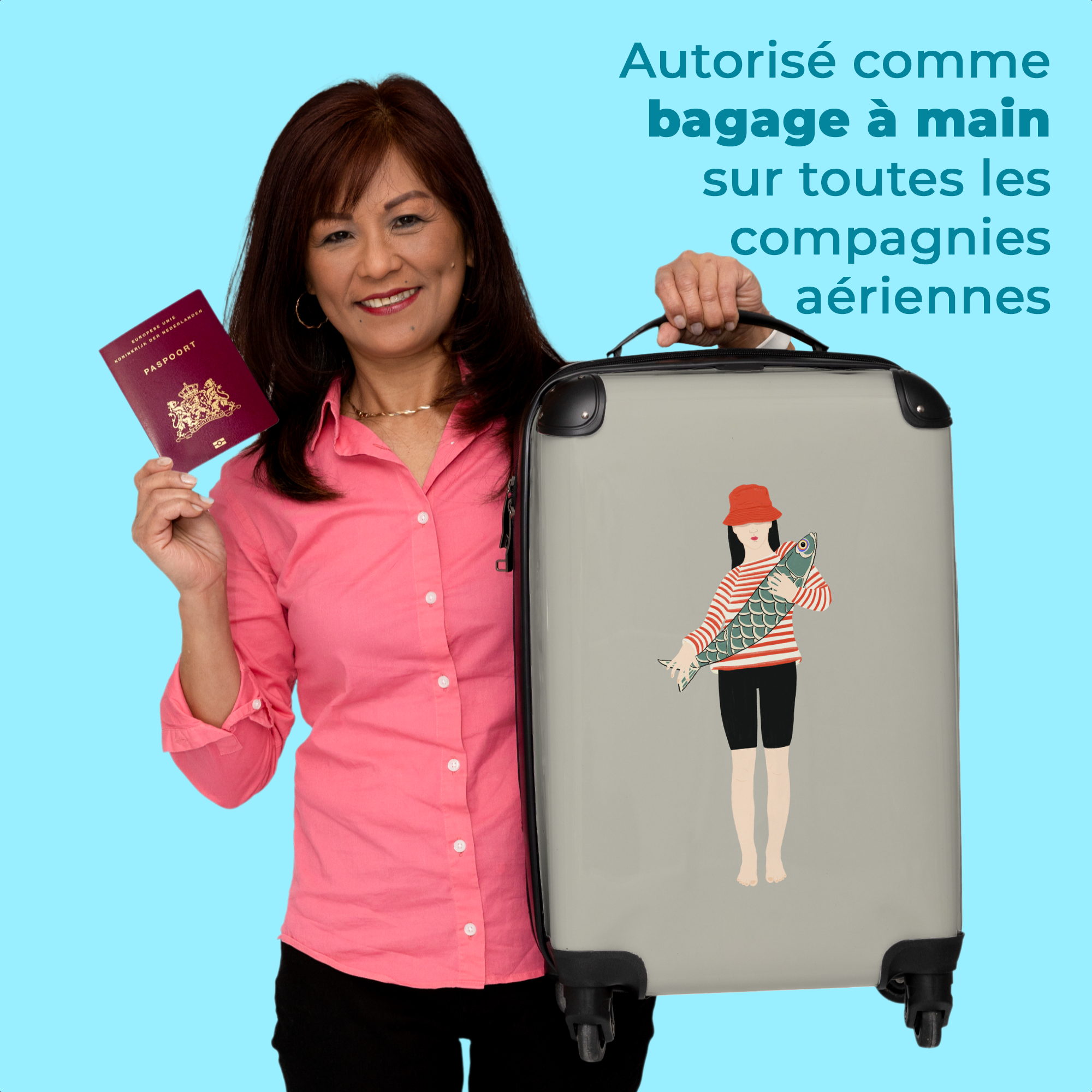 NoBoringSuitcases.com® Valise Chariot à Bagages à Main Poisson - Femme - Abstrait - Art Bagage Cabine imp