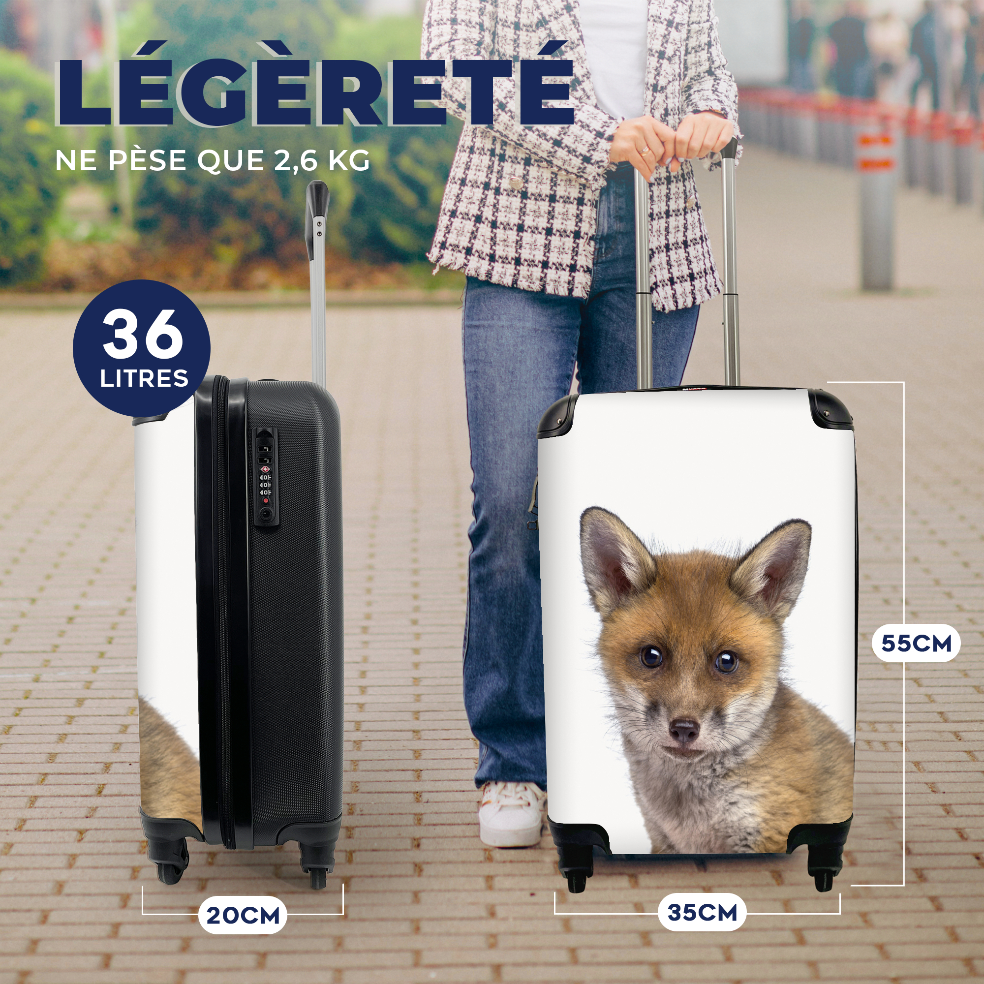 | Libellé | NoBoringSuitcases.com® Valise Chariot à Bagages à Main Renard - Enfants - Garçon - Rouge Bagage Cabine imprimé 55x35x25 cm Valise de Voyage avec Roul |