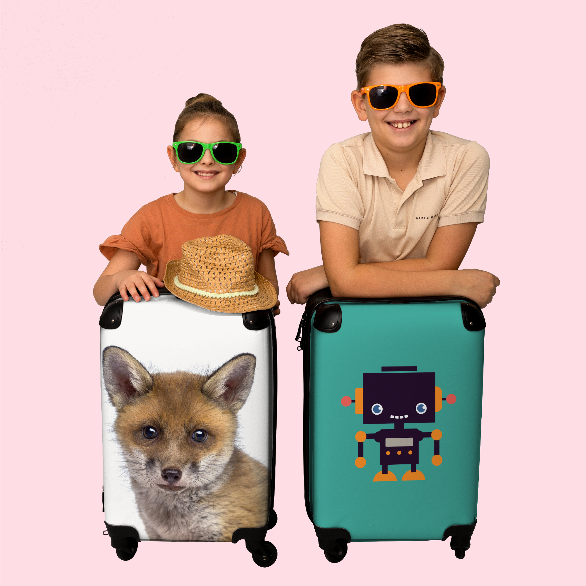 NoBoringSuitcases.com® Valise Chariot à Bagages à Main Renard - Enfants - Garçon - Rouge Bagage Cabine im