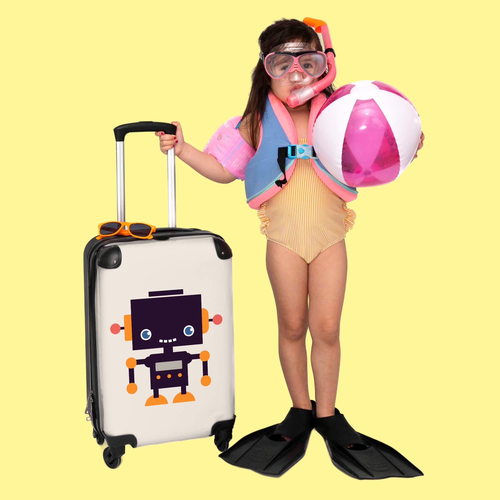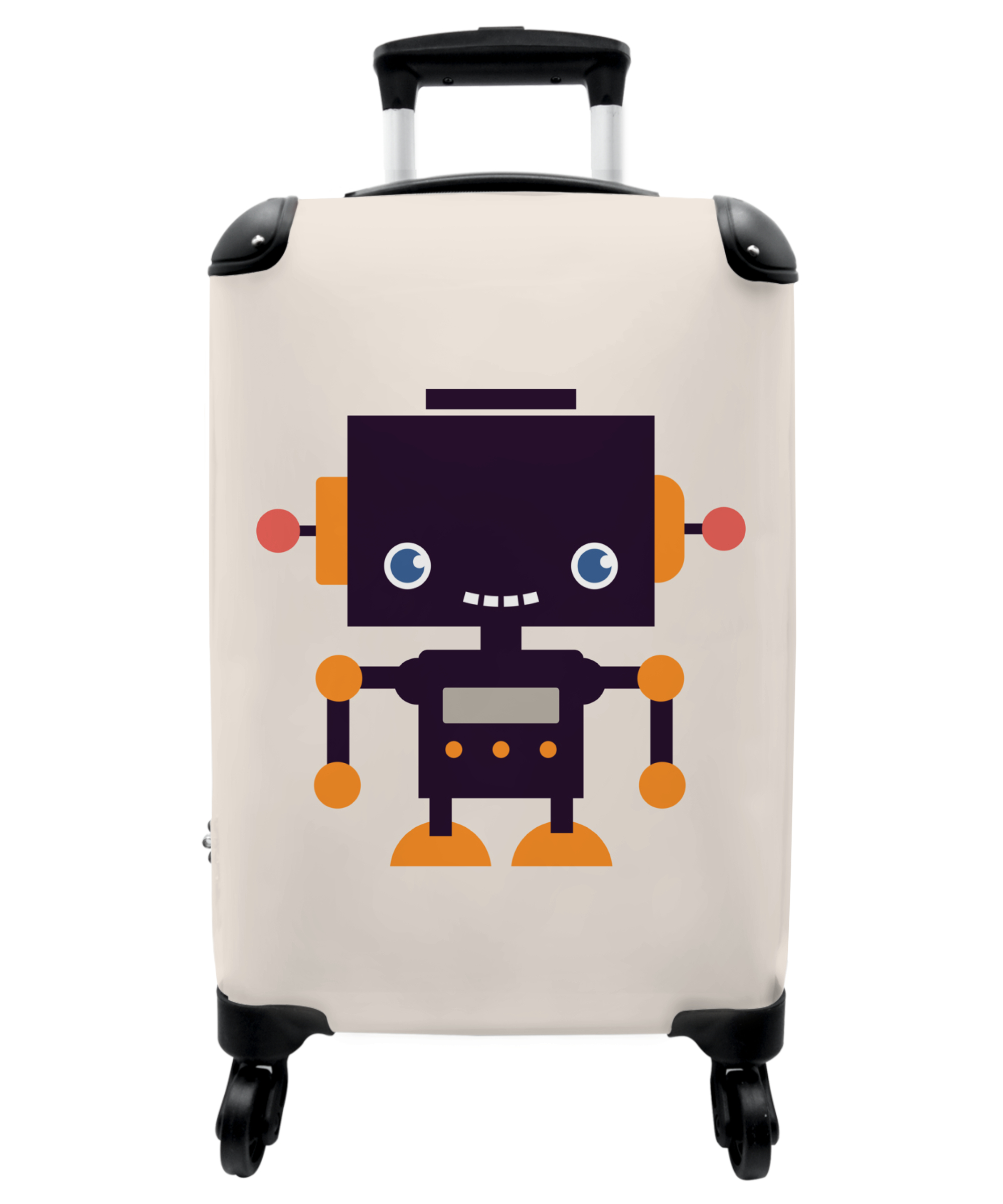 NoBoringSuitcases.com® Valise Chariot à Bagages à Main Robot - Antenne - Beige - Enfants Bagage Cabine im