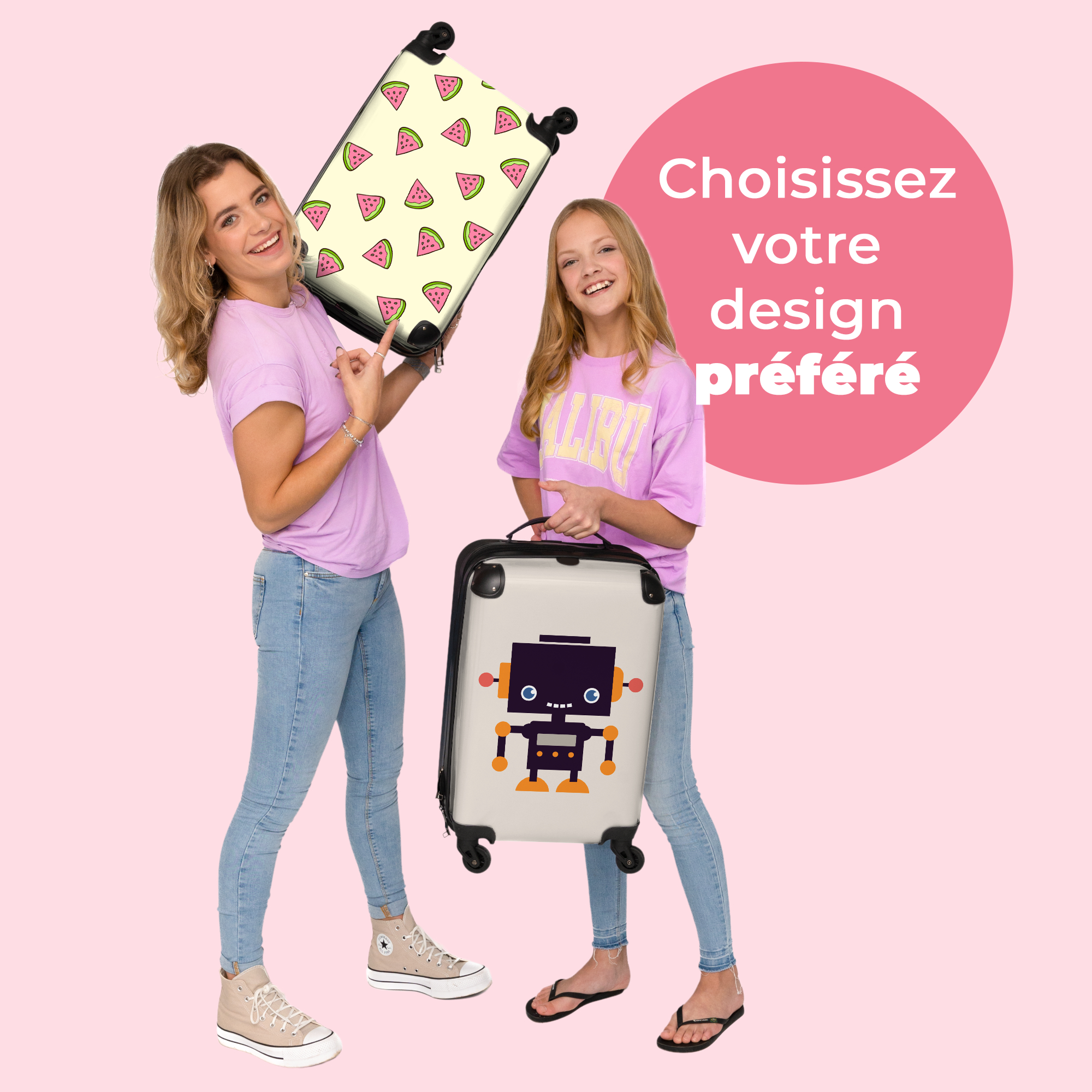 | Libellé | NoBoringSuitcases.com® Valise Chariot à Bagages à Main Robot - Antenne - Beige - Enfants Bagage Cabine imprimé 55x35x25 cm Valise de Voyage avec Roul |