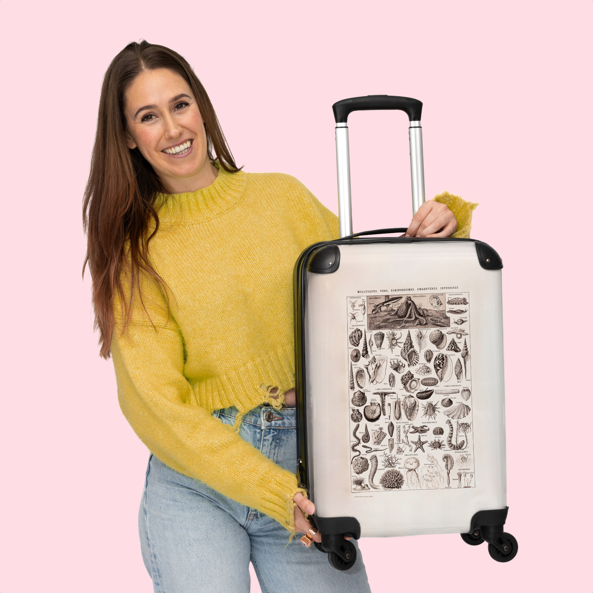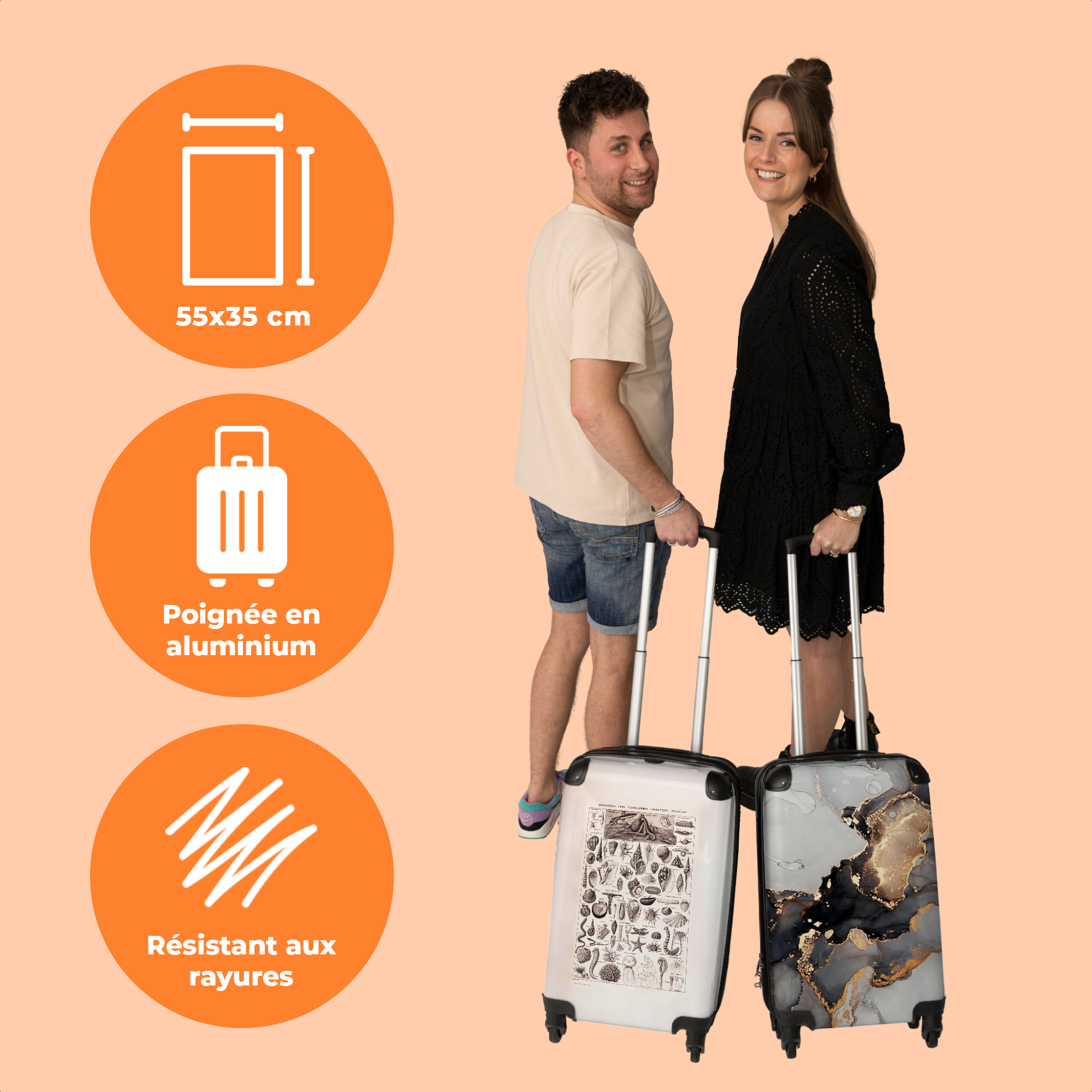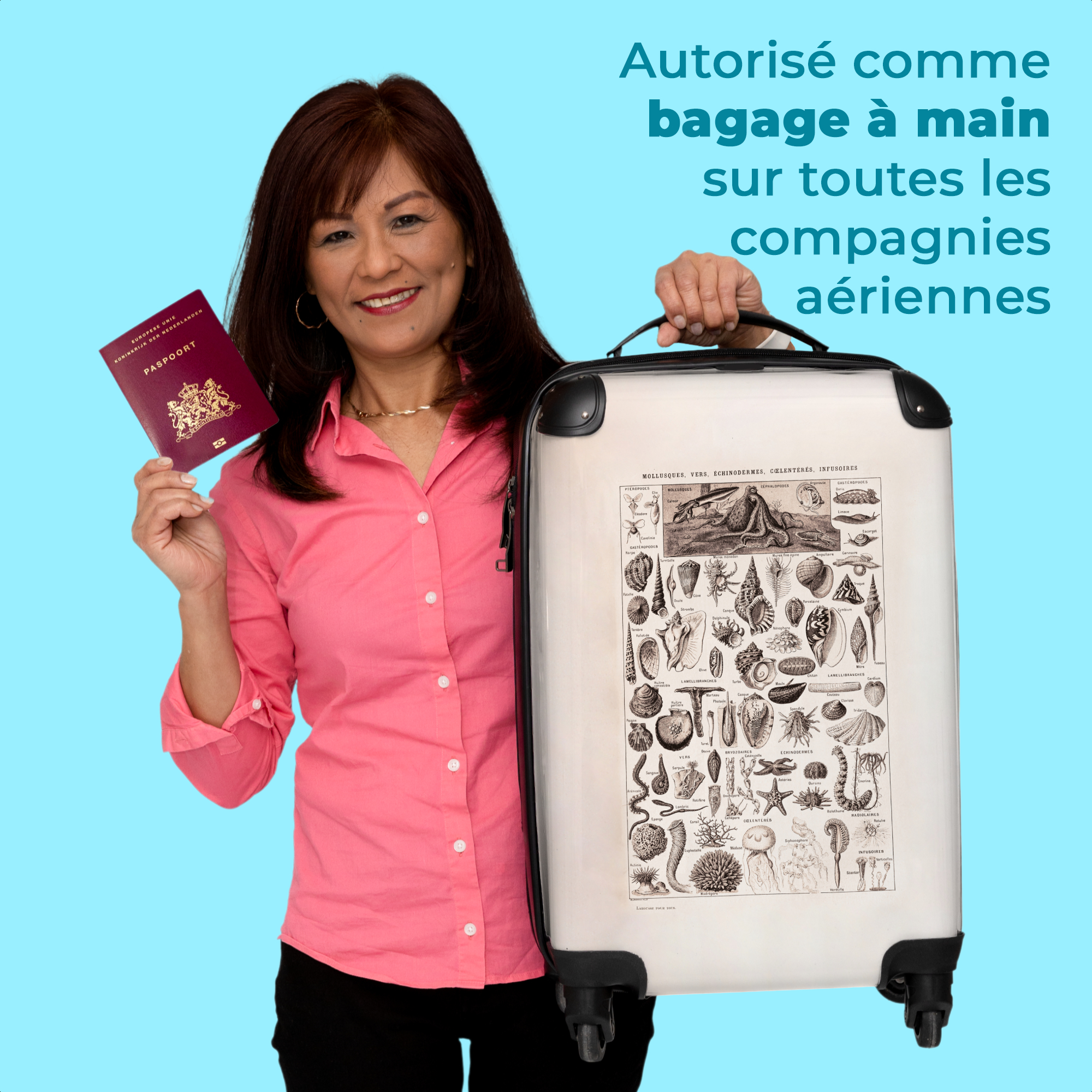 Libellé NoBoringSuitcases.com® Valise Chariot à Bagages à Main Vintage - Shells - Illustration - Noir et blanc - Millot Bagage Cabine imprimé 55x35x25 cm Val