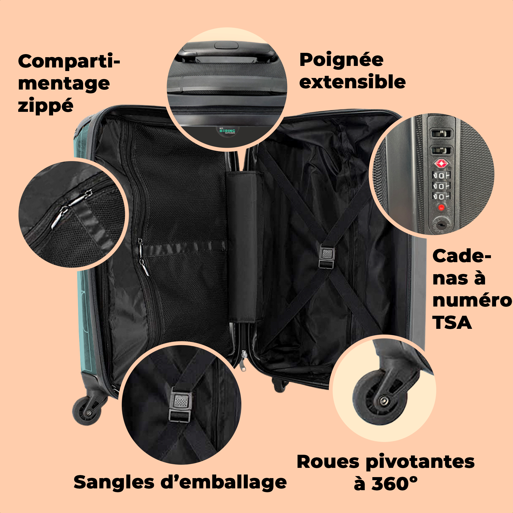 | Libellé | NoBoringSuitcases.com® Valise Chariot à Bagages à Main Voiture - Vintage - Peinture - Vert Bagage Cabine imprimé 55x35x25 cm Valise de Voyage avec Ro |