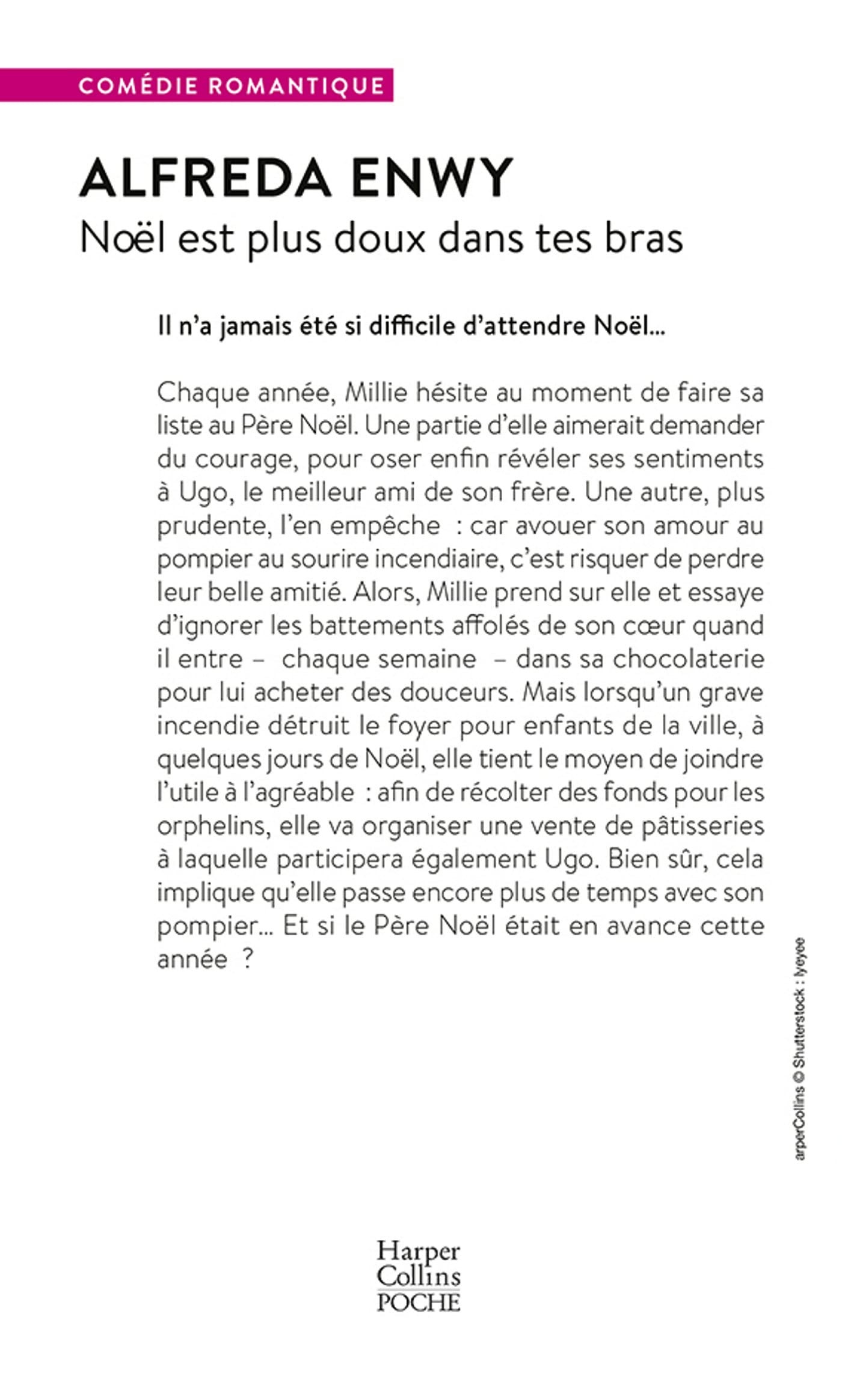 Chaque année, Millie hésite au moment de faire sa liste au Père Noël. Une partie d’elle aimerait demander du courage, pour oser enfin révéler ses sentiments à Ugo, le meilleur ami de son frère. Une autre, plus prudente, l’en empêche : car avouer son amour au pompier au sourire incendiaire, c’est risquer de perdre leur belle amitié. Alors, Millie prend sur elle et essaye d’ignorer les battements affolés de son cœur quand il entre – chaque semaine – dans sa chocolaterie pour lui acheter des douceurs. Mais lorsqu’un grave incendie détruit le foyer pour enfants de la ville, à quelques jours de Noël, elle tient le moyen de joindre l’utile à l’agréable : afin de récolter des fonds pour les orphelins, elle va organiser une vente de pâtisseries à laquelle participera également Ugo. Bien sûr, cela implique qu’elle passe encore plus de temps avec son pompier… Et si le Père Noël était en avance cette année ?