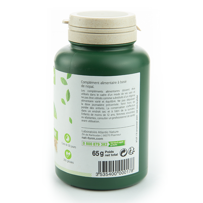 Ingrédients pour 6 gélules : Poudre de raquettes de nopal 1500 mg Gélatine 450 mg