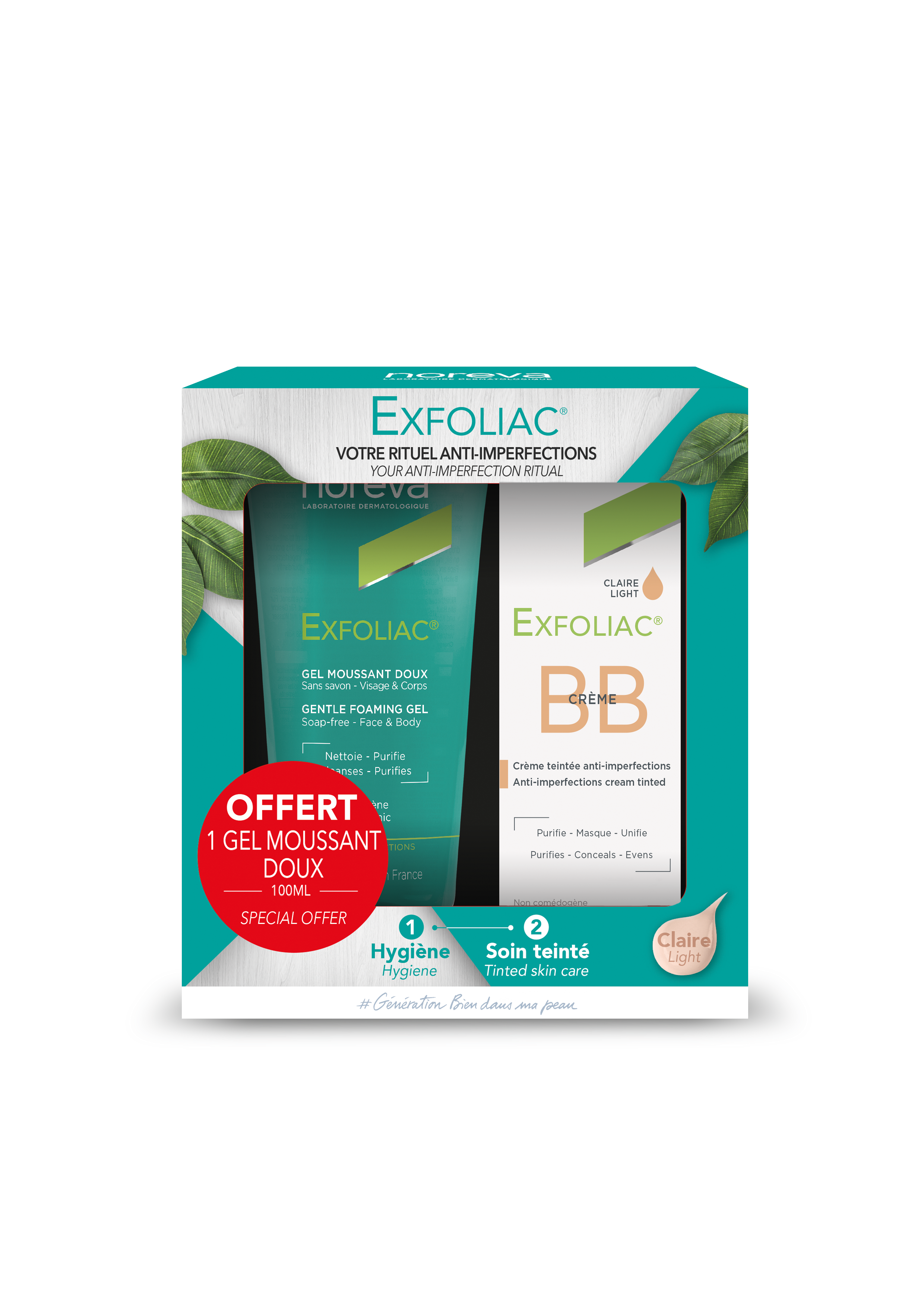 | Libellé | Noreva Exfoliac BB Crème Teintée Claire 30 ml + Gel Moussant Doux 100 ml Offert |