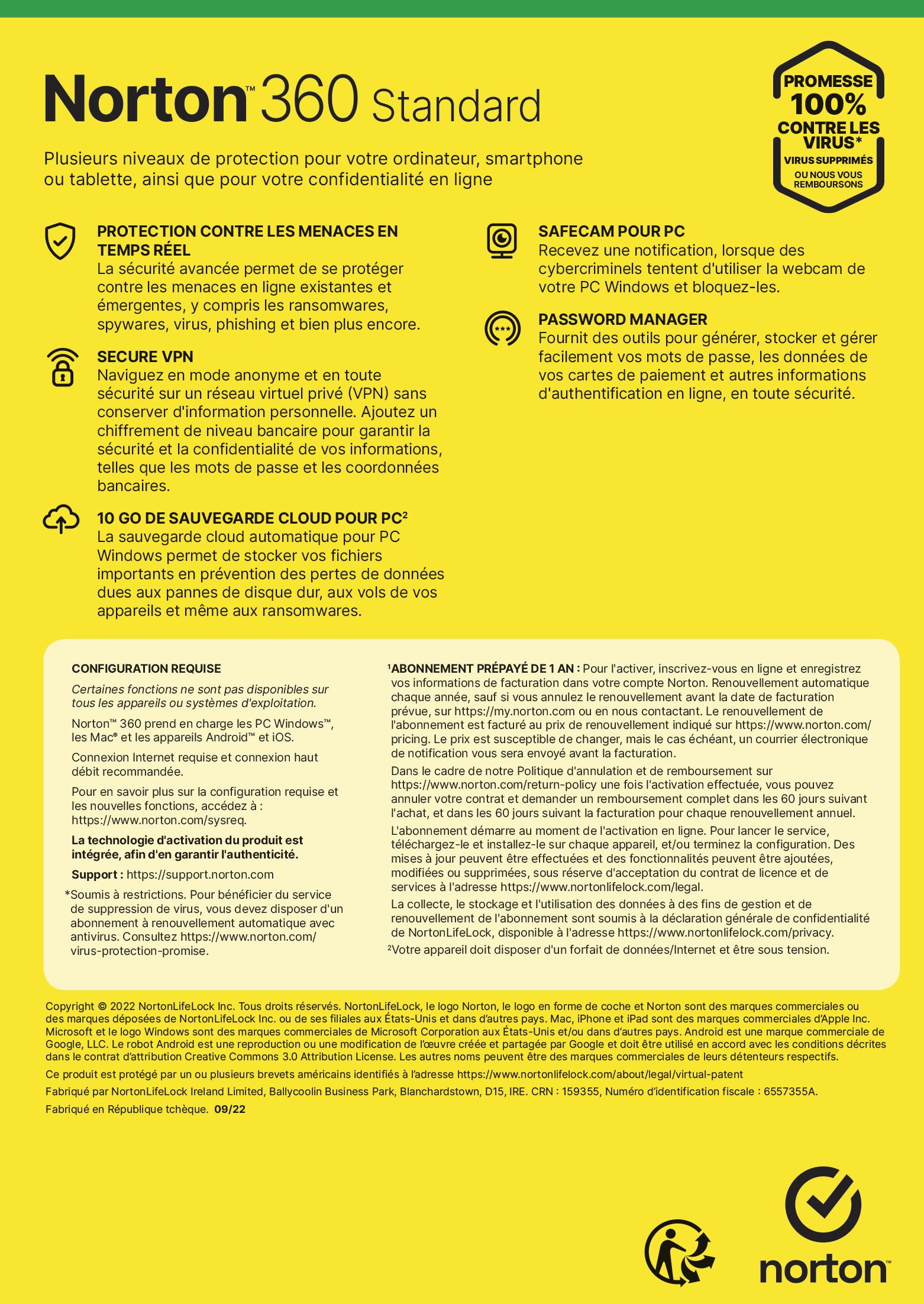 Norton 360 Standard - Licence 1 an - 1 poste - A télécharger