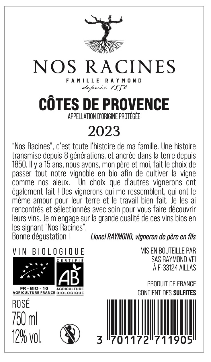 Nos Racines BIO, 2023 - Côtes de Provence AOP - Rosé - 75 cl