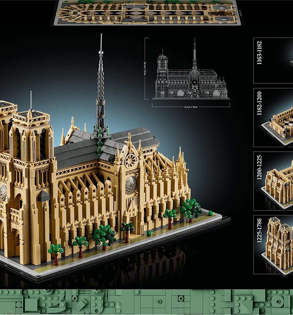 Revivez chaque étape de la construction d’un célèbre monument parisien avec le set de construction pour adultes LEGO Architecture Notre-Dame de Paris (21061). Cette maquette LEGO pour adultes vous entraîne dans l’histoire de la construction de l'édifice, de la pose de la première pierre en 1163 à l’aspect majestueux qui était le sien avant l’incendie de 2019, en passant par les travaux de rénovation de l’architecte Viollet-le-Duc. De quoi plaire aux amateurs d'art et d'architecture ! Recréez des détails authentiques, comme l’arrière courbe, les clochers, les rosaces et la flèche centrale entourée de statues, et ajoutez la plaque pour parfaire cette maquette symbolique de Notre-Dame. Retirez le toit de votre création pour admirer les colonnes et les voûtes et soulevez les tours pour contempler l’intérieur. Ce set regorge de détails historiques qui plongeront tout constructeur adultes dans une passionnante aventure. Ce set LEGO Architecture Landmarks Collection est un cadeau LEGO d’exception à offrir aux adultes créatifs passionnés d’histoire, d’architecture, d’art, de voyages ou de la France. C’est aussi un beau souvenir de Paris et ce set peut être exposé fièrement dans un salon ou un bureau, une fois la construction terminée.