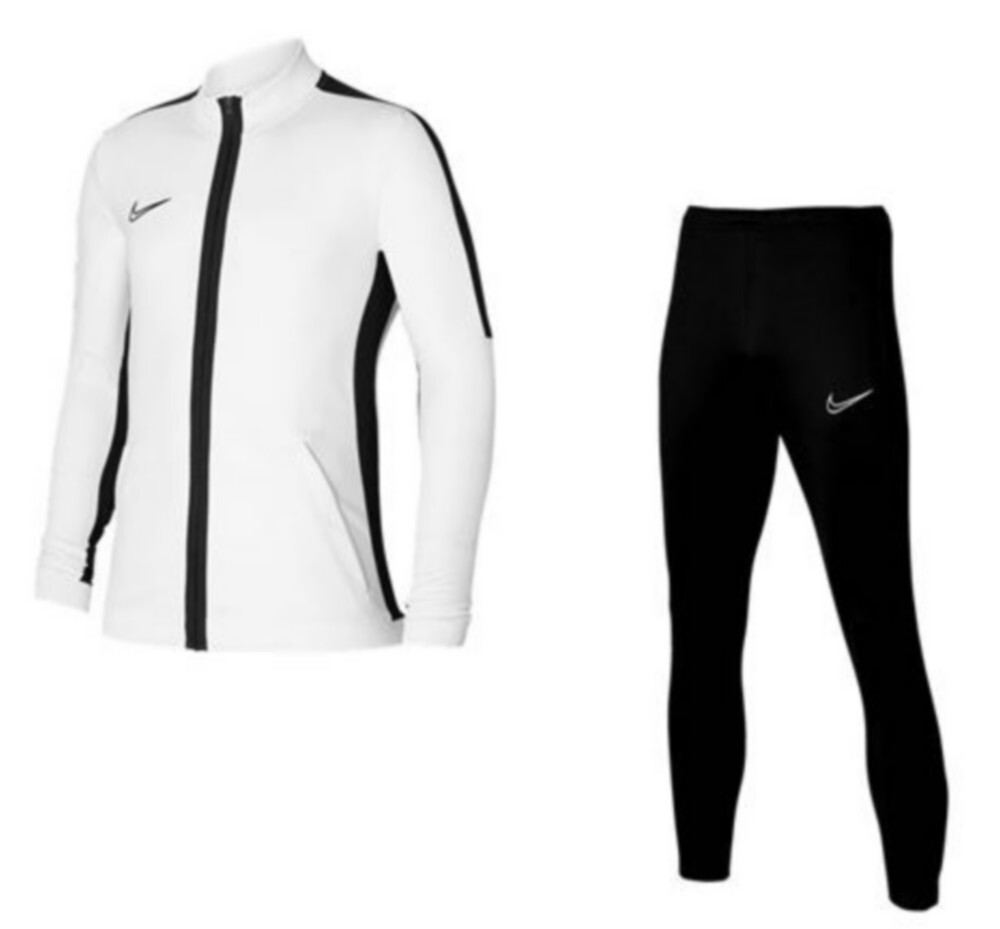 Nouveau Jogging Homme Nike Swoosh Blanc et Noir, doté de la technologie Dri-Fit, Veste zippée, bandes noires sur le devant sous et sur les épaules, col montant, Poignets côtelés, 2 poches zippées, logo Nike, pantalon avec cordon de serrage, chevilles zippées, doté de la technologie Dri-Fit, 2 poches, logo Nike, produit garantie sans contrefacon expédié de France, 100 % polyester, lavable en machine.