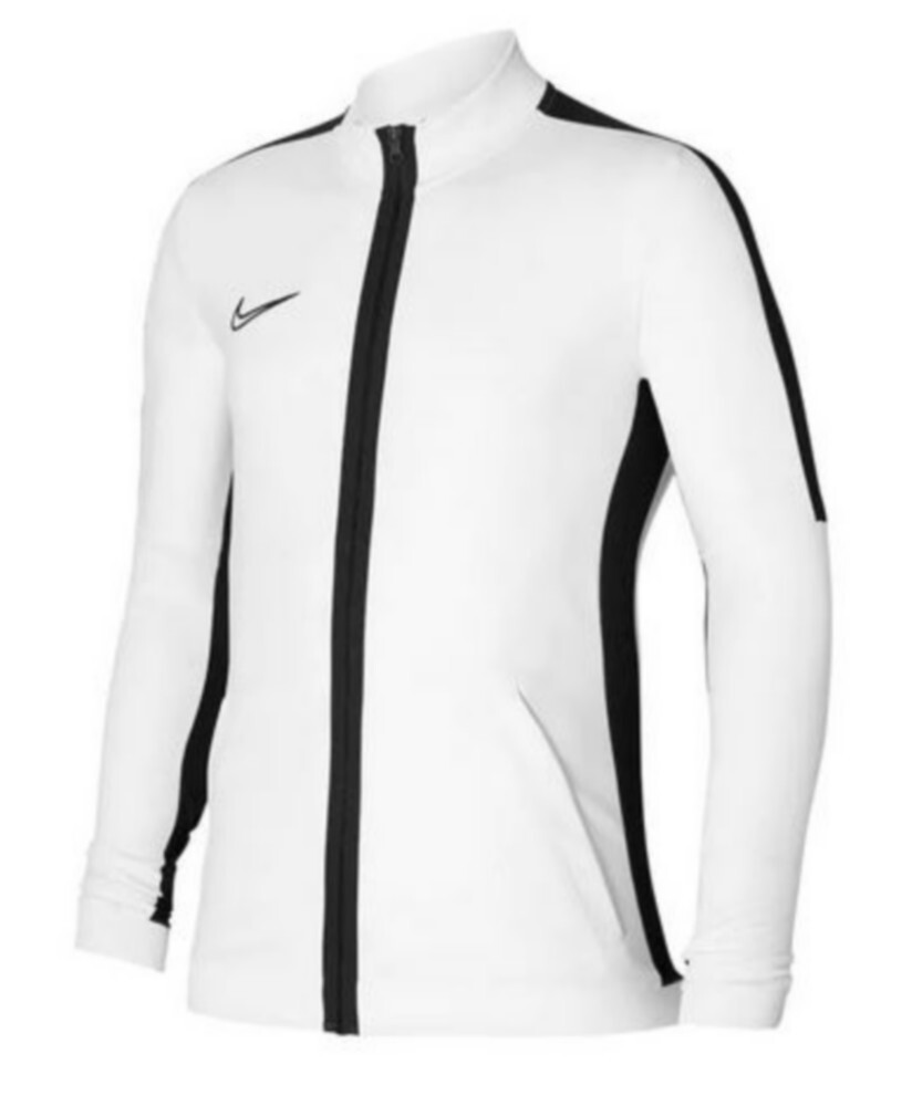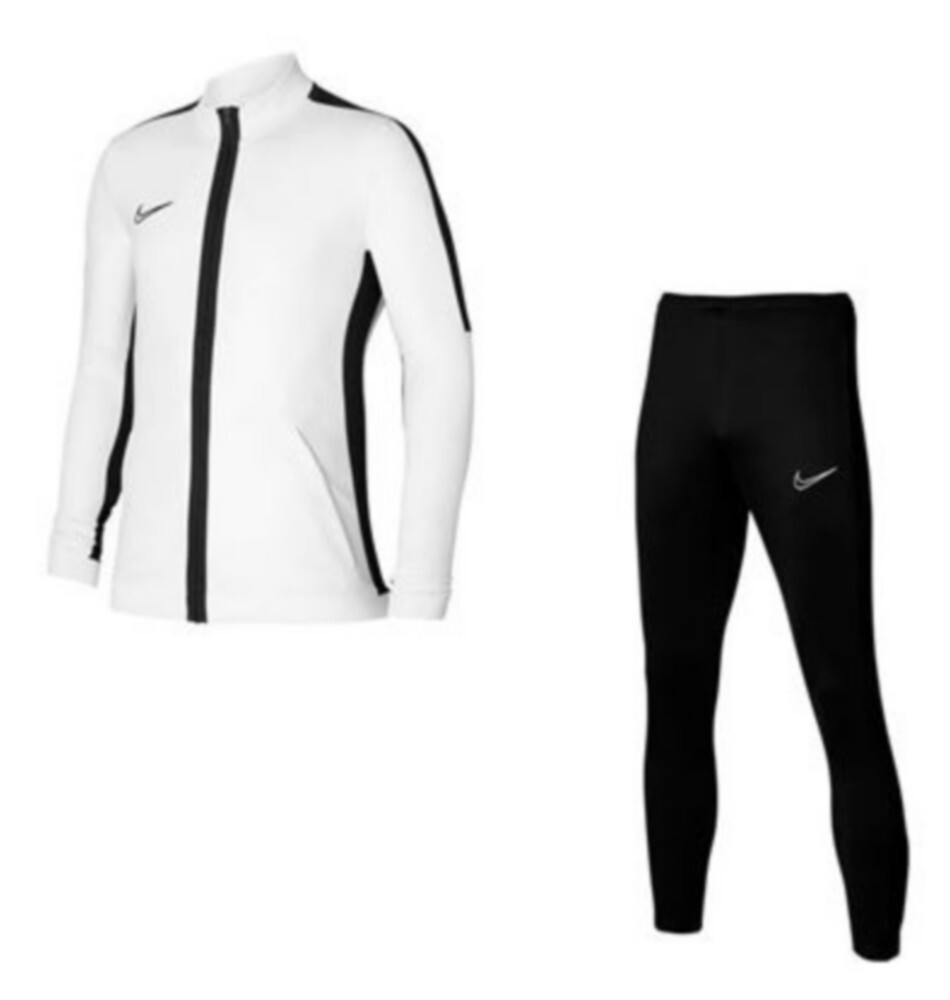 Nouveau Survetement Jogging Enfant Nike Dri-Fit Blanc, veste et pantalon zippés et poches ouvertes, bandes noires avant bras et épaules, doté de la technologie Dri-Fit qui évacue la transpiration, tissu doux anti-transpiration, empiècements en mesh pour une meilleure aération, confort et robustesse, côtelés, logos Nike, 100% Polyester, article neuf garantie sans contrefacon expédié de France. Nettoyage en machine.