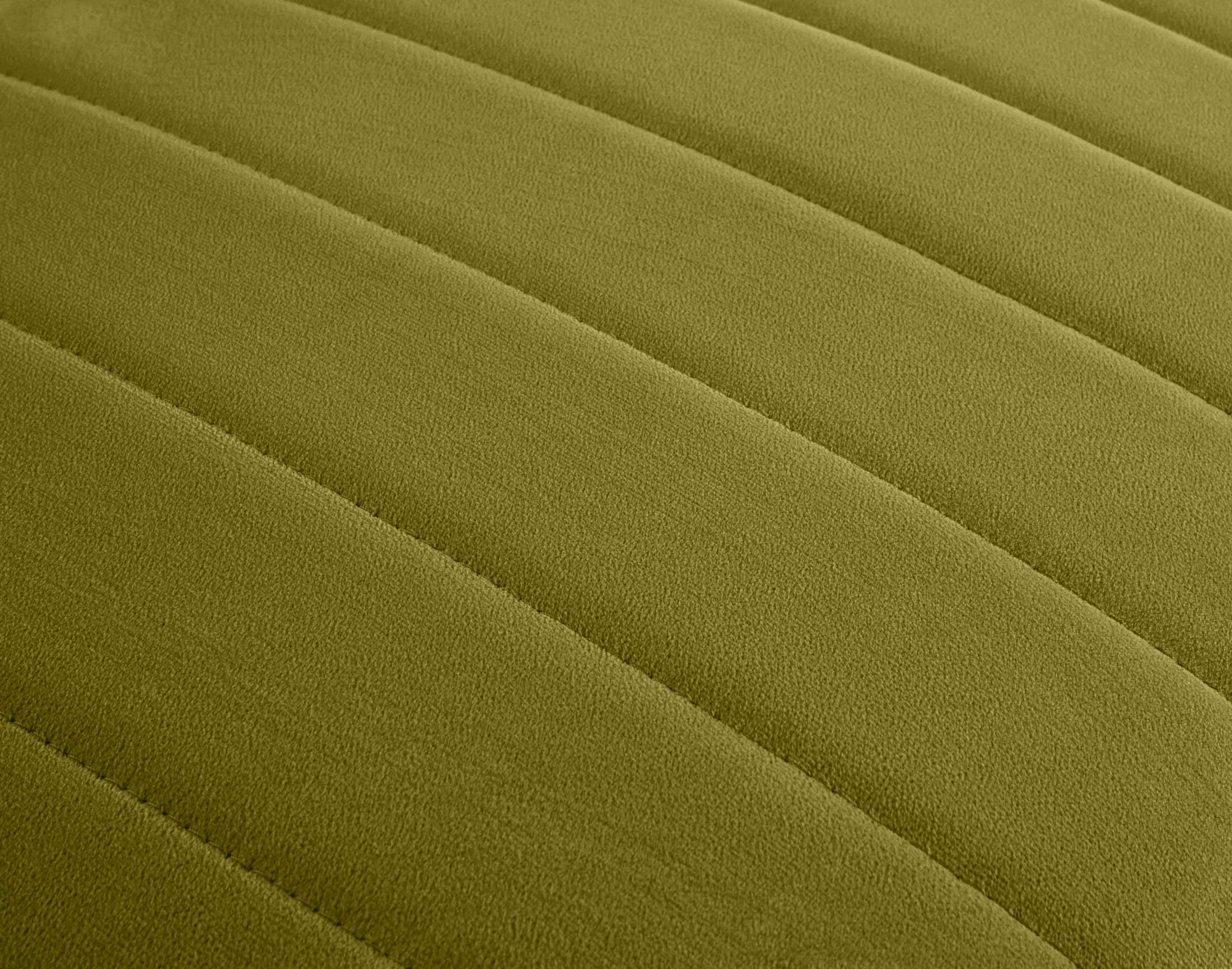 - Détail des matières : Assise : Mousse polyuréthane de densité 30Kg/m3 – Dossier : Mousse polyuréthane de densité 23Kg/m3 - Ressorts ondulés - Structure : Bois aggloméré et panneaux de particules - Revêtement en velours - Pieds en plastique
