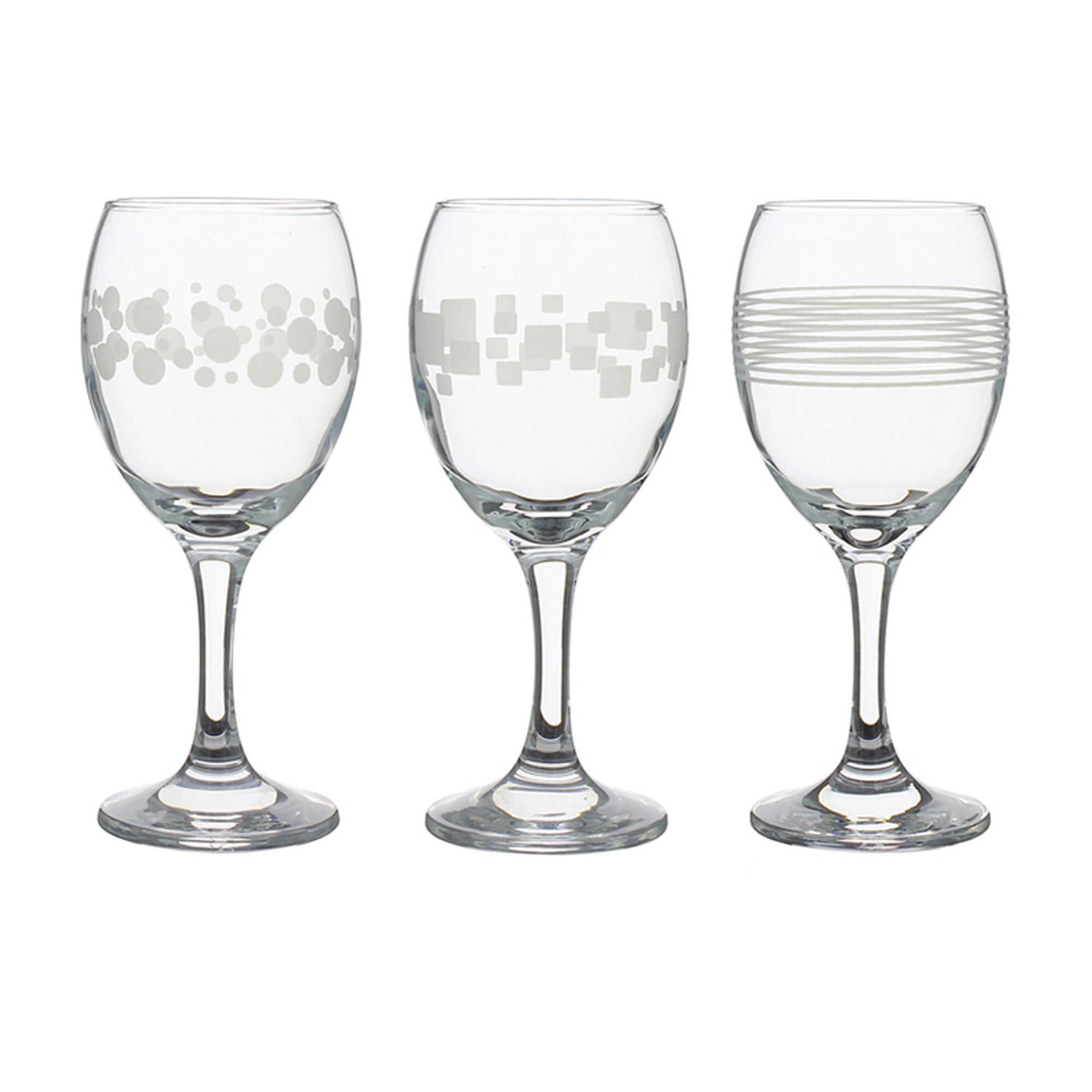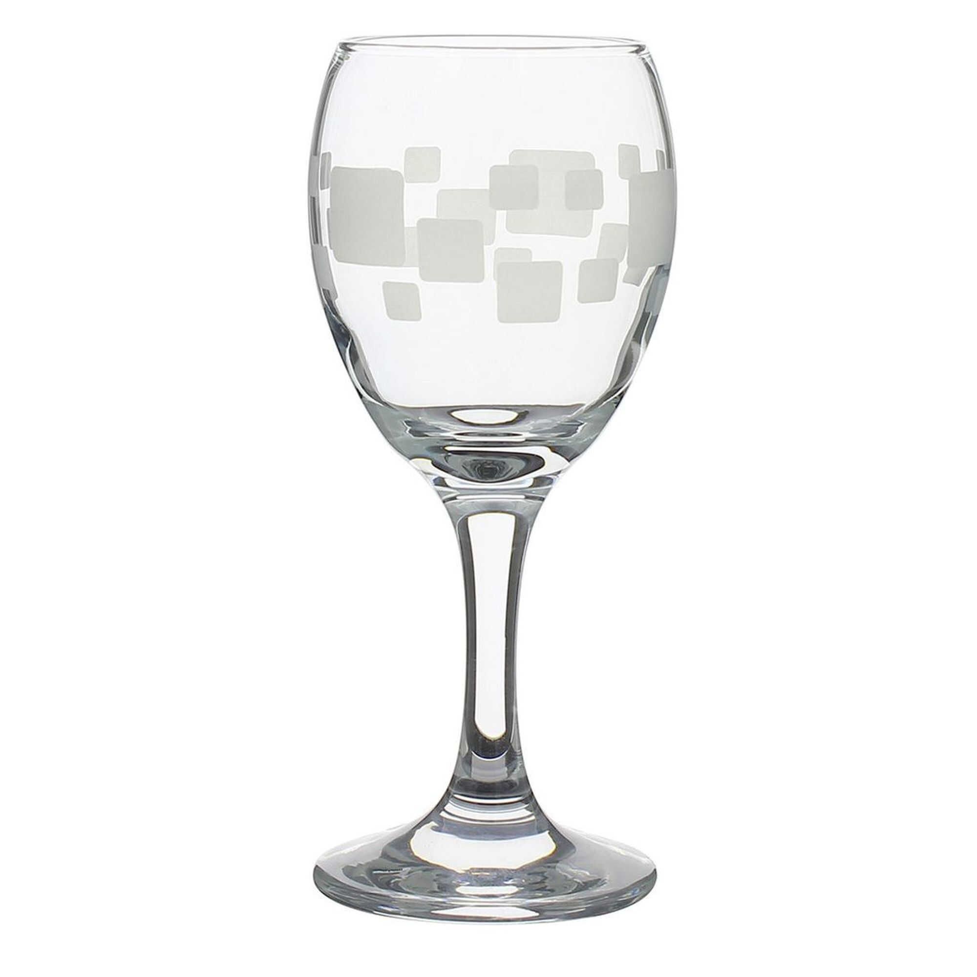 Verre à pied de forme classique mais avec une touche d'originalité : de délicats motifs sérigraphiés satiné matModerne et festifMotifs sérigraphiés assortis des carrés, des lignes et des cerclesPrésentation dans un pack type valisette de 6 verresGaranti contact alimentairePasse au lave vaisselle