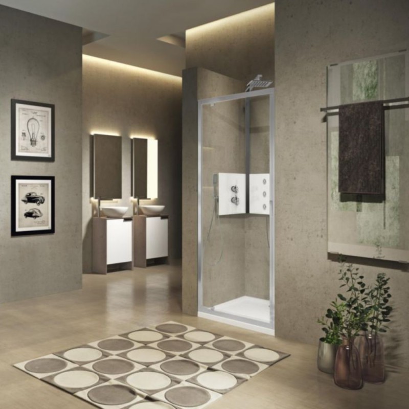 Pour installation en niche ou en angle (associée à 1 paroi fixe).