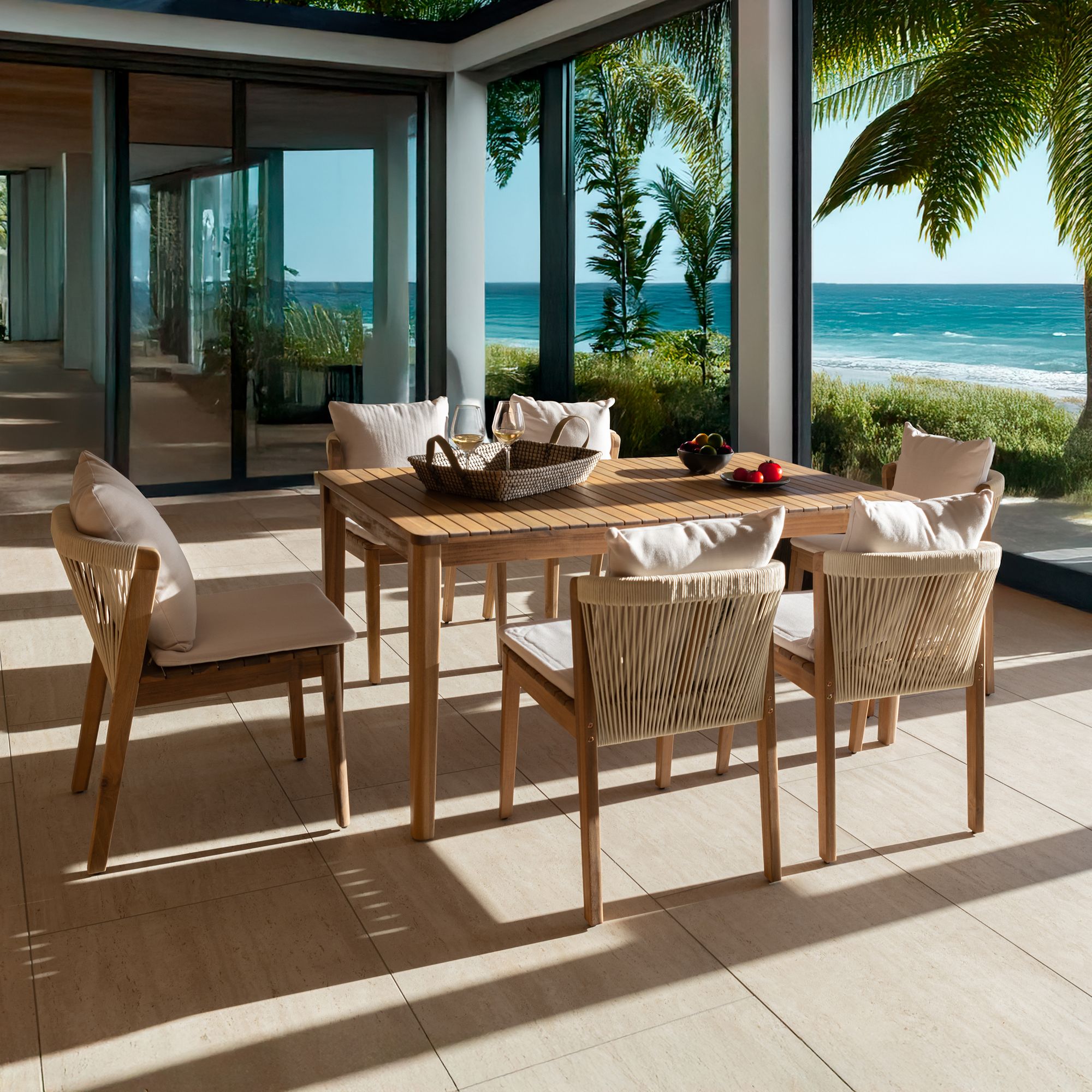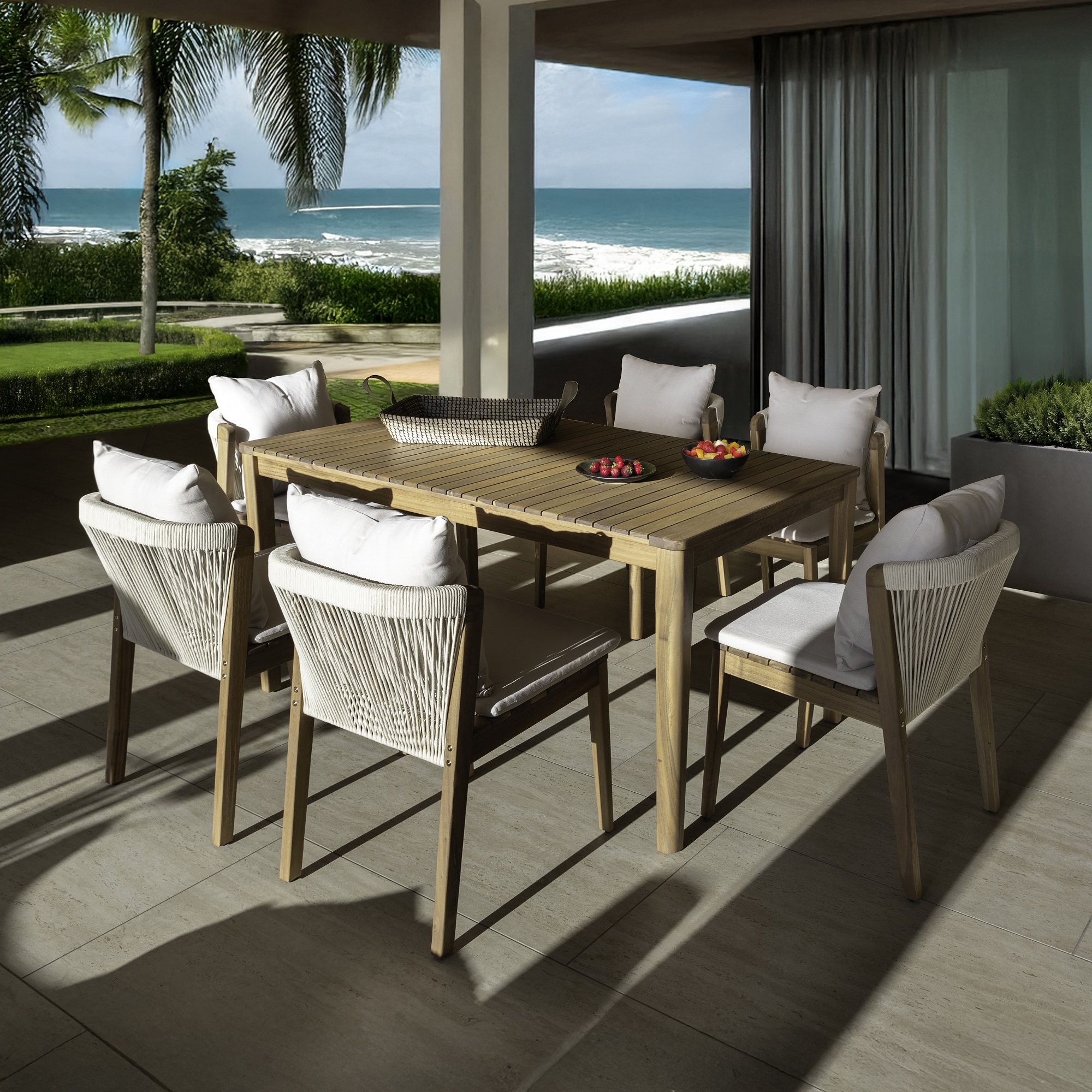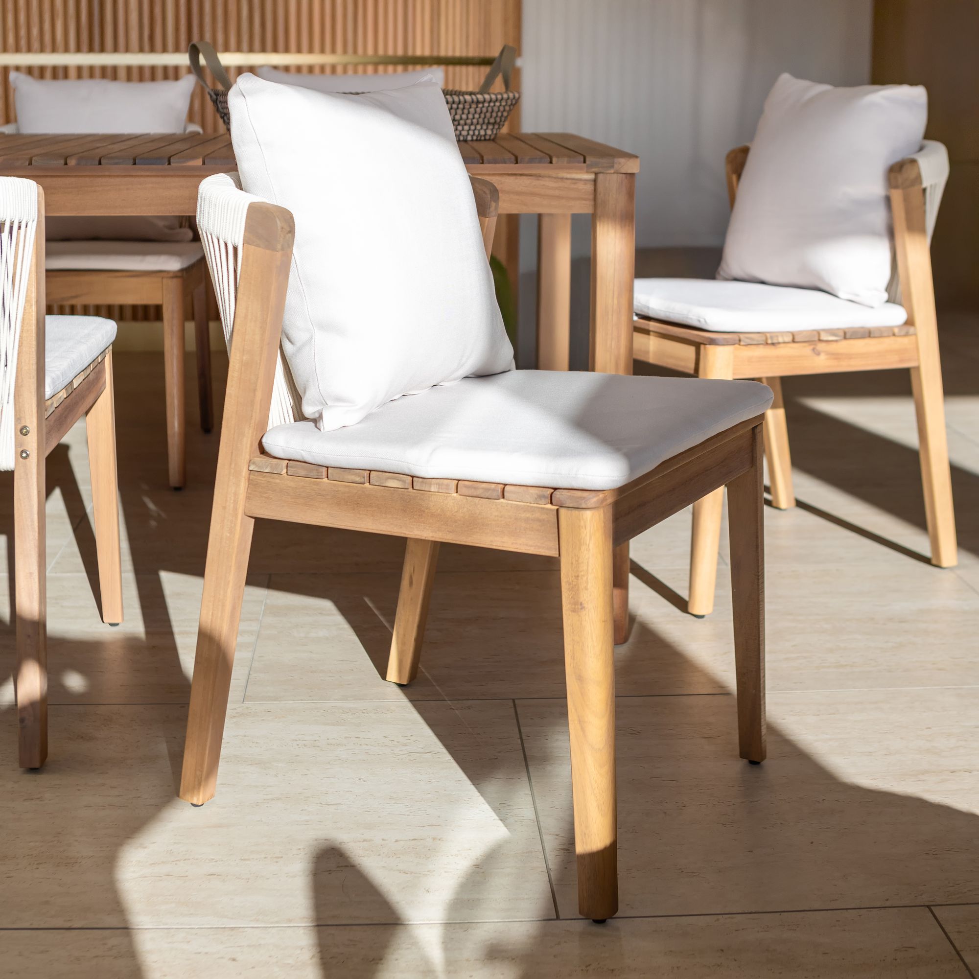 NOW'S HOME - Ensemble De Jardin Table 1.5m+6 Chaises En Acacia Avec Coussin Blanc Fidji